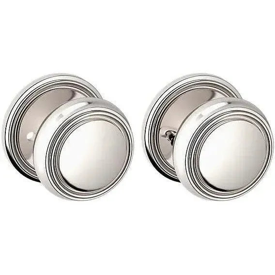 - Knob set paired with roses without a privacy or locking feature to fit the 2.125" standard door preparation.