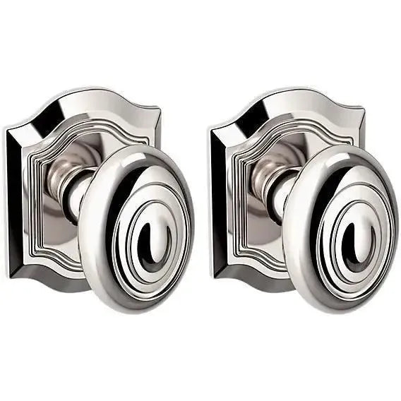 - Knob set paired with roses without a privacy or locking feature to fit the 2.125" standard door preparation.