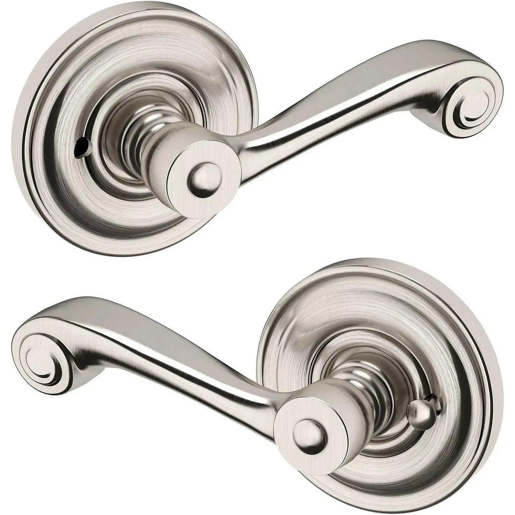 - Lever set paired with roses with a privacy lock to both close and secure any door with the 2.125" standard door preparation.