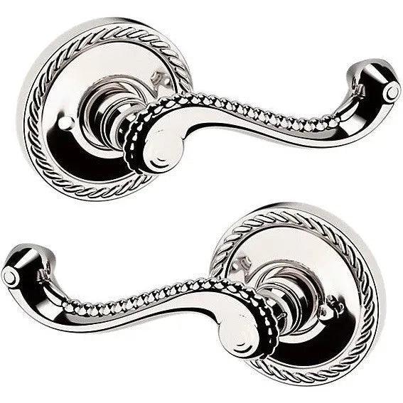 - Lever set paired with roses without a privacy or locking feature to fit the 2.125" standard door preparation.