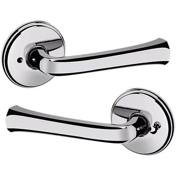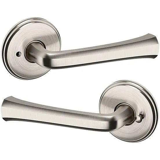 - Lever set paired with roses with a privacy lock to both close and secure any door with the 2.125" standard door preparation.