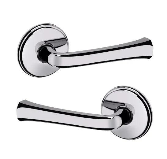 - Lever set paired with roses without a privacy or locking feature to fit the 2.125" standard door preparation.
