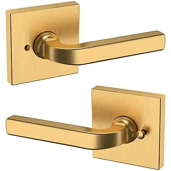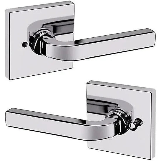 - Lever set paired with roses with a privacy lock to both close and secure any door with the 2.125" standard door preparation.