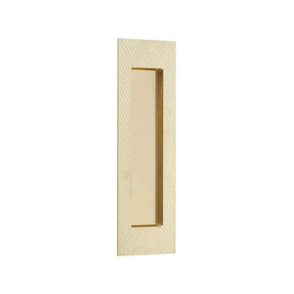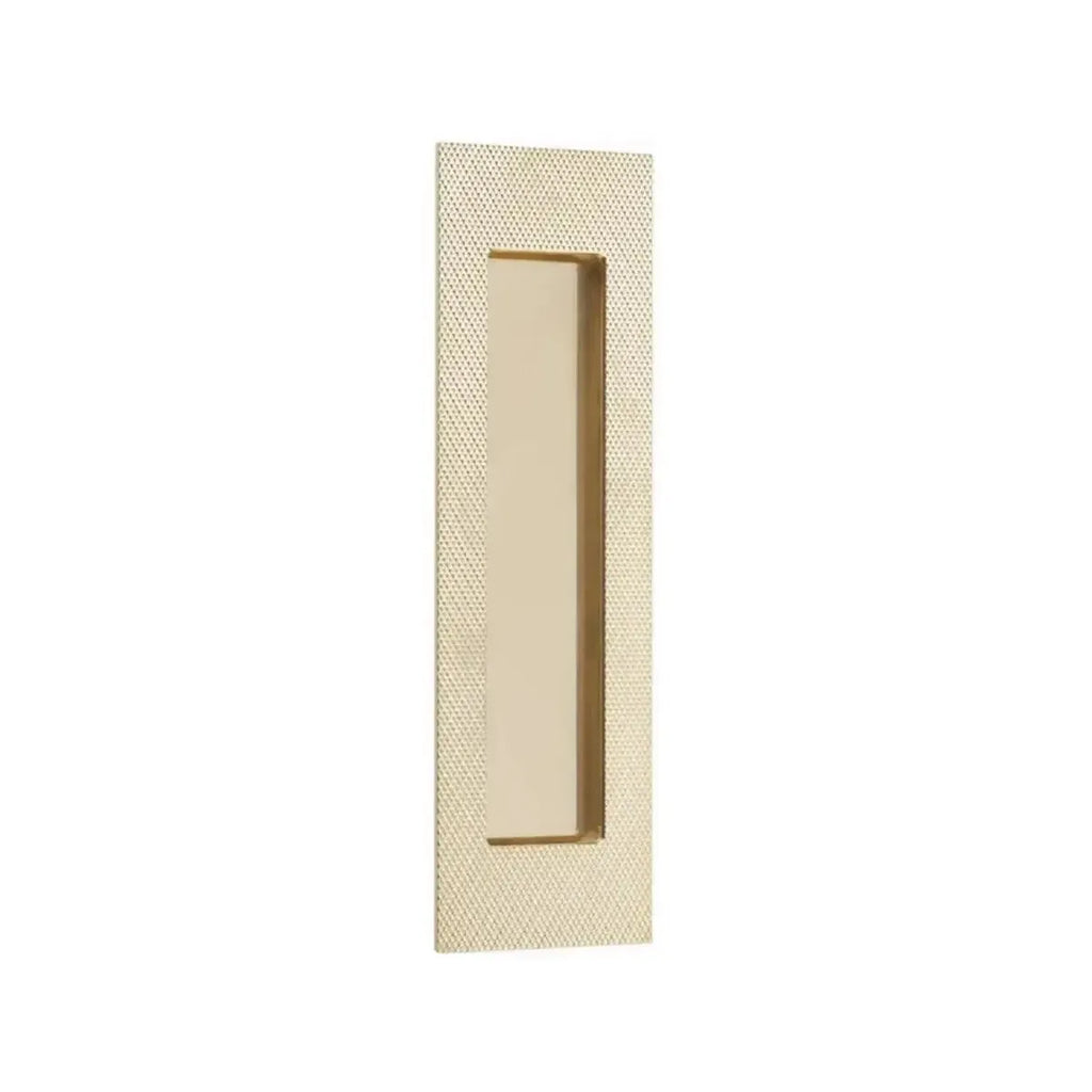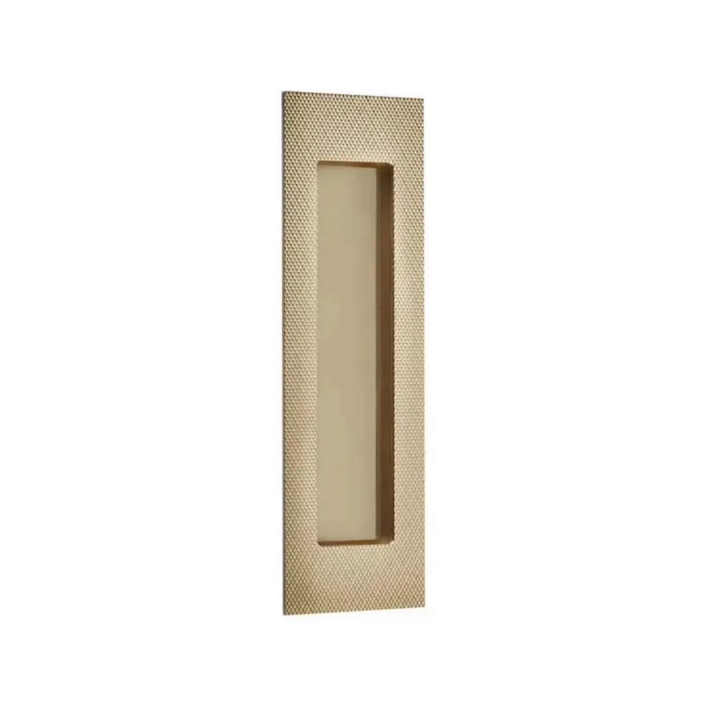 Make a statement with Emtek’s new Modern Rectangular Knurled Flush Pulls. This chic style comes with a smooth interior, 10 brass finishes and in 2 size options: 4" and 7". Each solid brass pull can be used in a variety of applications, from pocket doors and barn doors to closet doors and cabinets. The cross-hatch knurling texture suites well with our knurled Select cabinet and door products or can add a special and unique touch on its own.