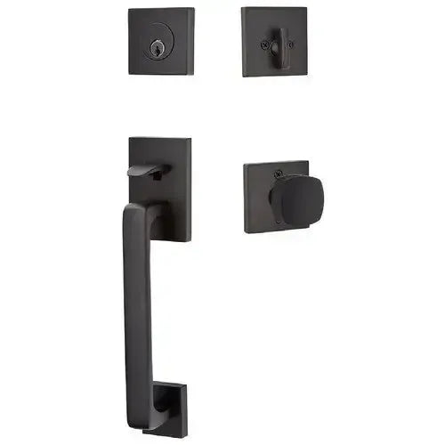 The Emtek Baden Entrance Handleset with Freestone Square Knob offers a sense of secure sanctuary and timeless beauty to your home. The robust construction and high-quality materials provide peace of mind, while the classic design and textured knob create a visually appealing focal point. It's a harmonious blend of security and style, a welcoming presence that greets you home each day. The textured surface of the knob adds a touch of rustic charm, evoking a sense of warmth and comfort. It's a small but significant detail that enhances the overall aesthetic of your entryway.