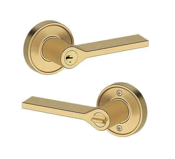- Lever set paired with roses with a privacy or locking feature to fit the 2 1/8" standard door preparation.