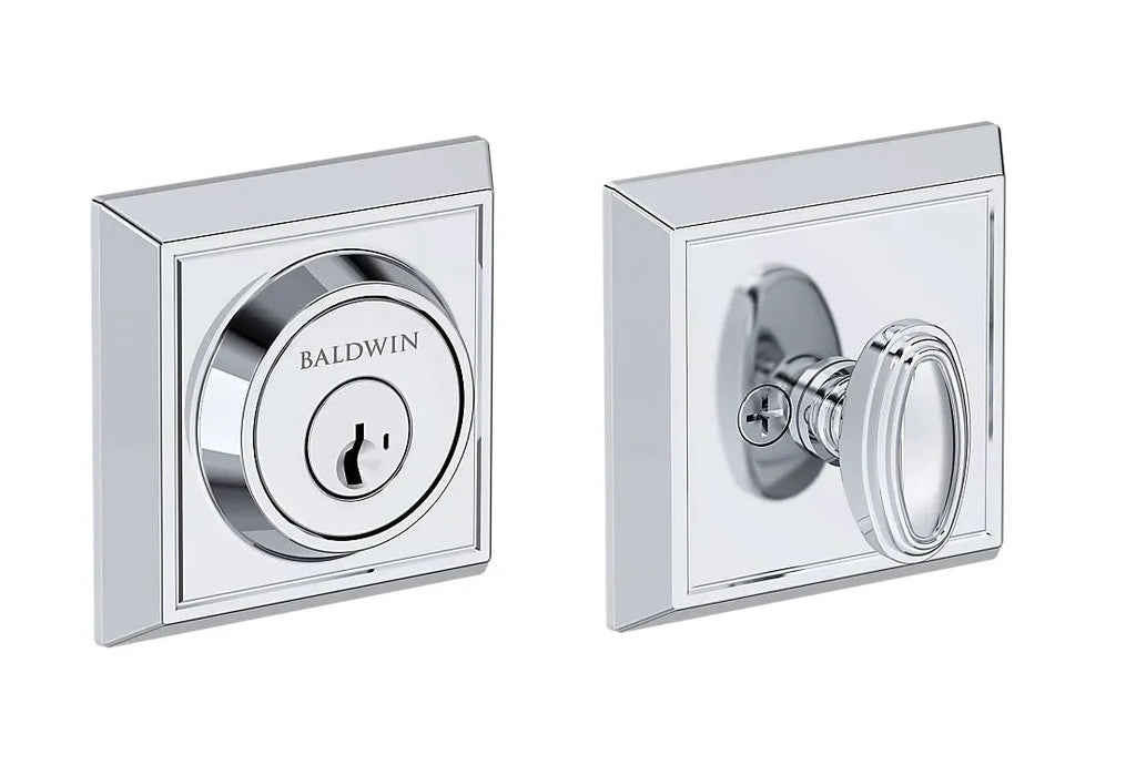The Baldwin Chamfered Square Deadbolt delivers sharp lines and a classic profile for a bold look. It pairs perfectly with contemporary doors, adding both style and security in one refined package. Crafted from solid brass, it’s built to perform while making a subtle yet sophisticated statement.