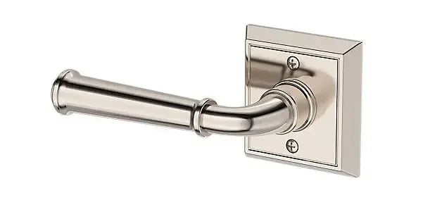 The Baldwin Reserve Dunsmoor Lever with Chamfered Square Rosette pairs traditional style with a classic base. The Dunsmore lever blends traditional curves and ringed detailing for a timeless look that feels polished, warm, and full of charm. A perfect choice for transitional spaces with a touch of traditional flair.