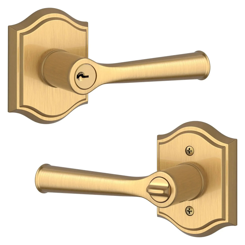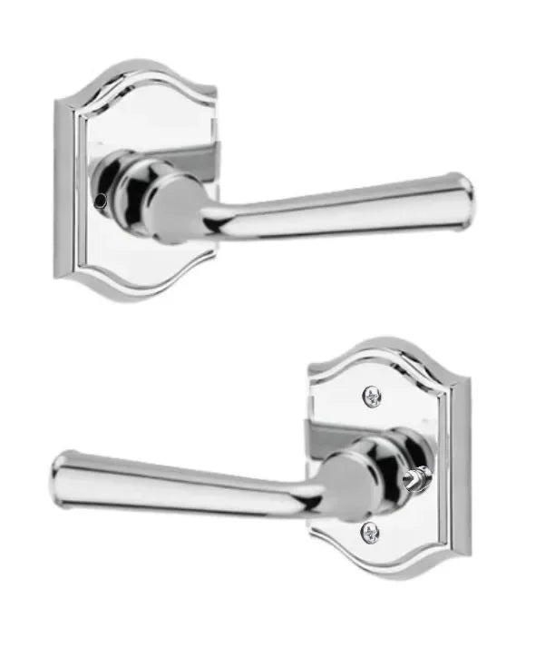 - Lever set paired with roses with a privacy or locking feature to fit the 2 1/8" standard door preparation.