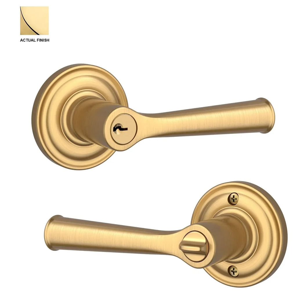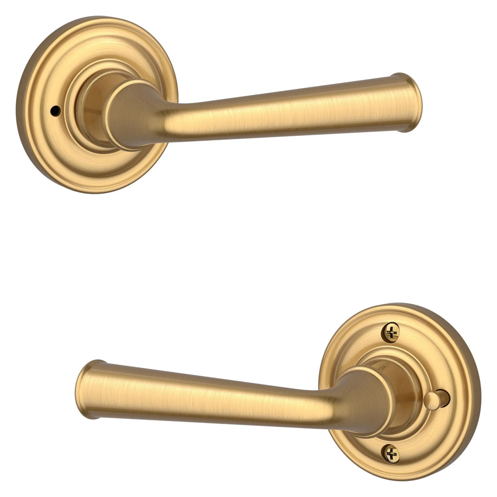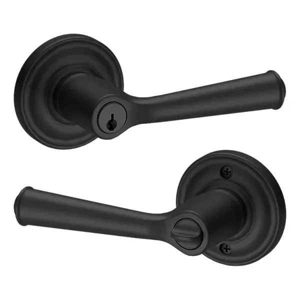 - Lever set paired with roses with a privacy or locking feature to fit the 2 1/8" standard door preparation.