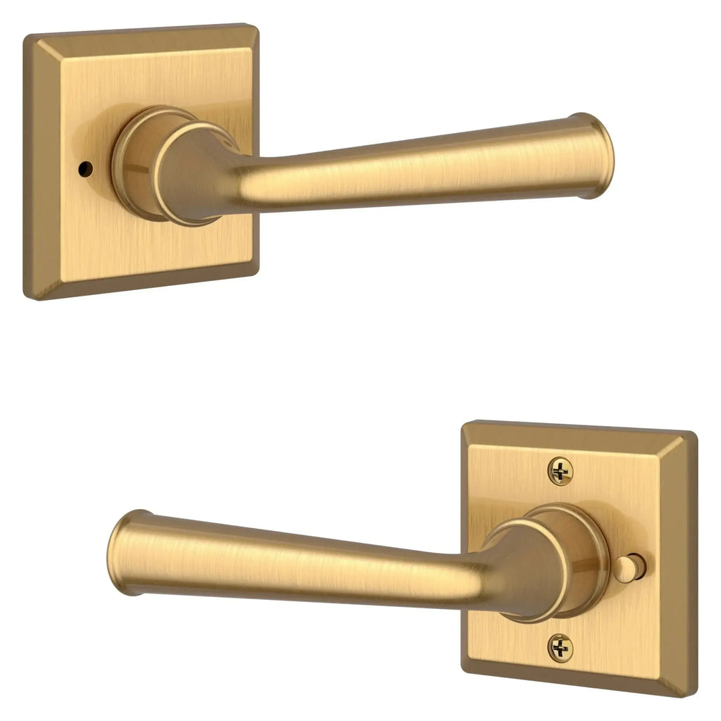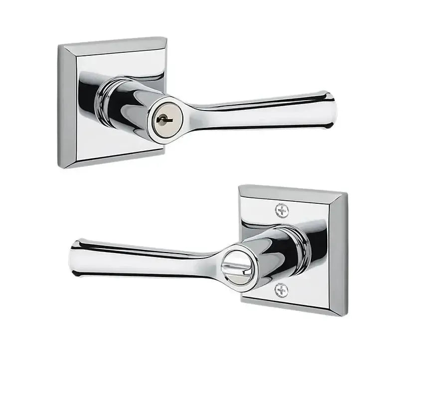 - Lever set paired with roses with a privacy or locking feature to fit the 2 1/8" standard door preparation.