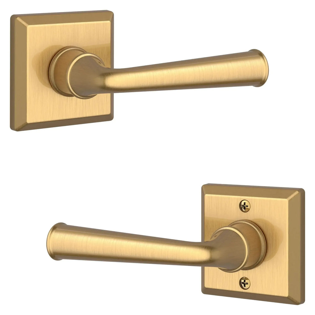 - Lever set paired with roses without a privacy lock to both close and secure any door with the 2 1/8" standard door preparation.