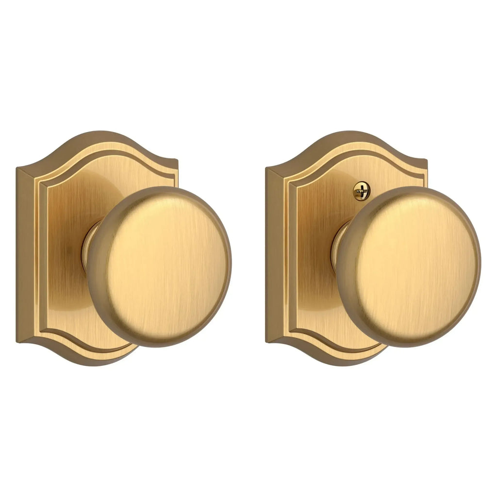 The Baldwin Reserve Round Knob with Traditional Arch Rosette blends classic curves with a subtle architectural touch. Its arched backplate adds visual interest while maintaining a timeless, elegant feel.