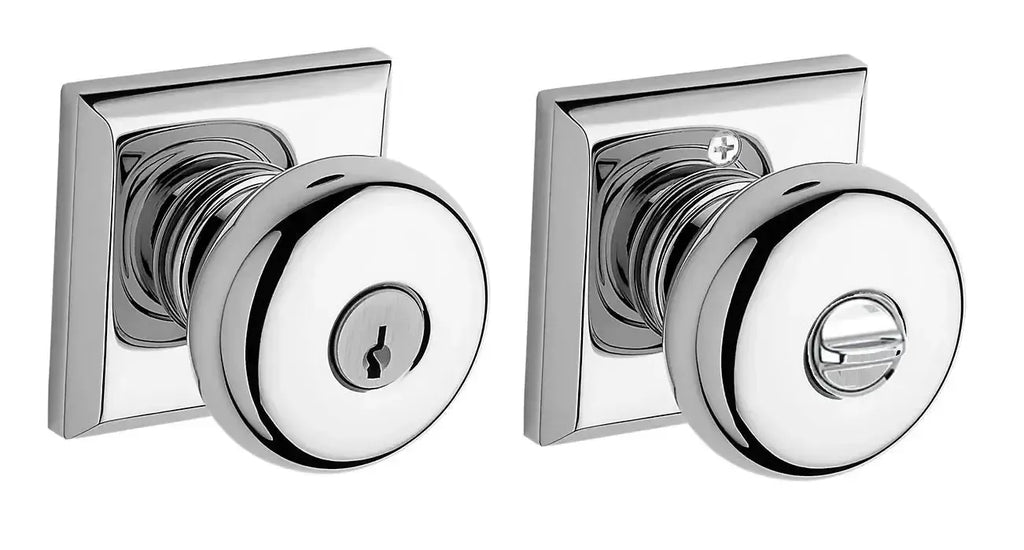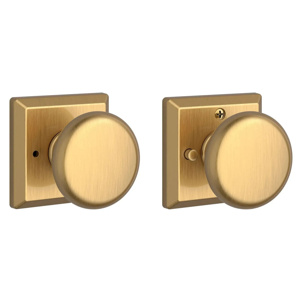 - Knob set paired with roses without a privacy lock to both close and secure any door with the 2 1/8" standard door preparation.