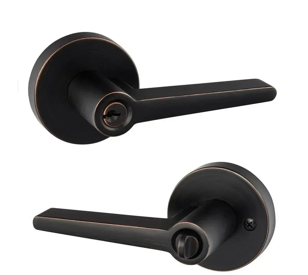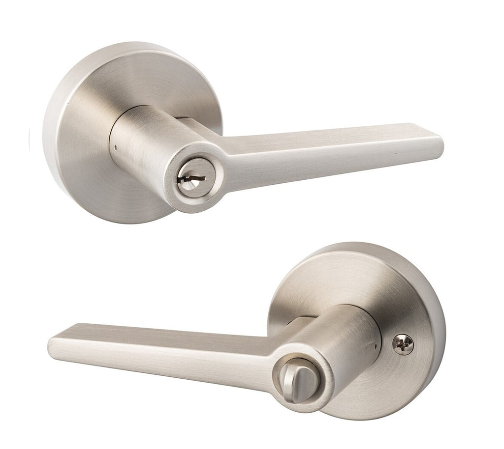 - Privacy levers are ideal for bedroom and bathrooms. They are locked by a push pin and unlocked by push pin, lever turn, or emergency pin outside
