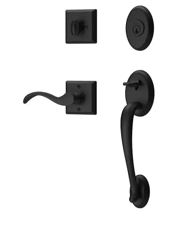 The Baldwin Reserve Columbus Handleset makes a bold statement with its blend of classic and contemporary design. The sleek curve lever offers a comfortable and modern grip, while the crisp lines of the Traditional Square Rosette add a touch of geometric sophistication. Crafted with Baldwin's renowned quality and available in a variety of finishes, this Columbus handleset provides both enhanced security and a distinctive style for your home's entry.