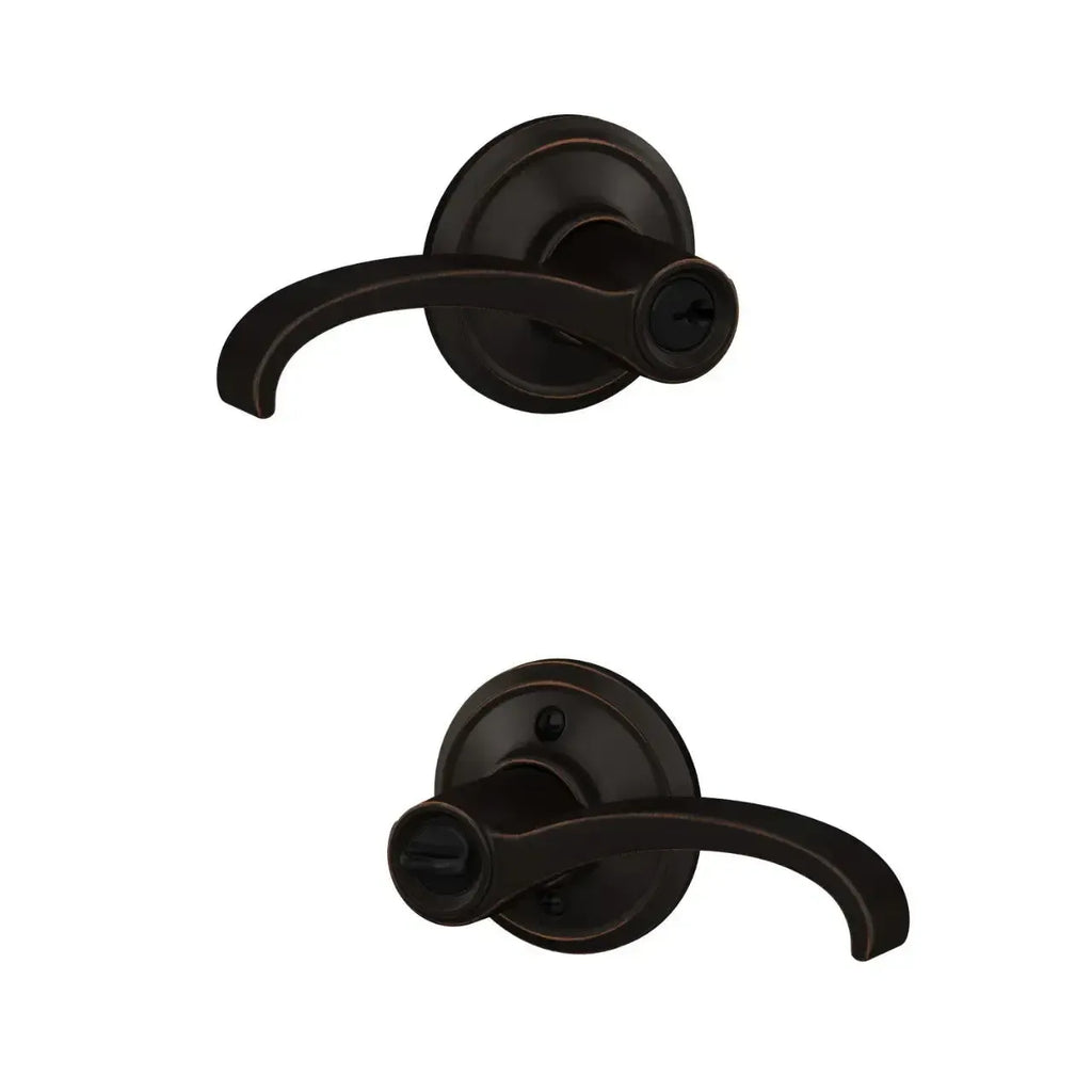 Add traditonal style and versatility to your doors with the Schlage Custom Whitney Lever with Alden Rosette. Featuring a curved lever paired with a round rosette, this design delivers a classic, architectural look. Available in a variety of finishes, easy to install, and built for lasting performance.