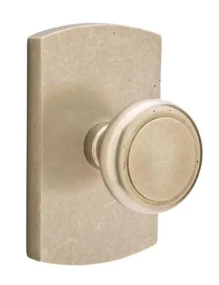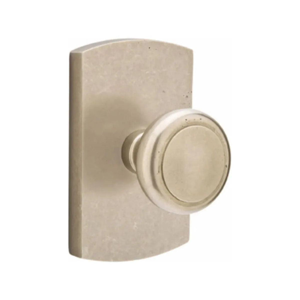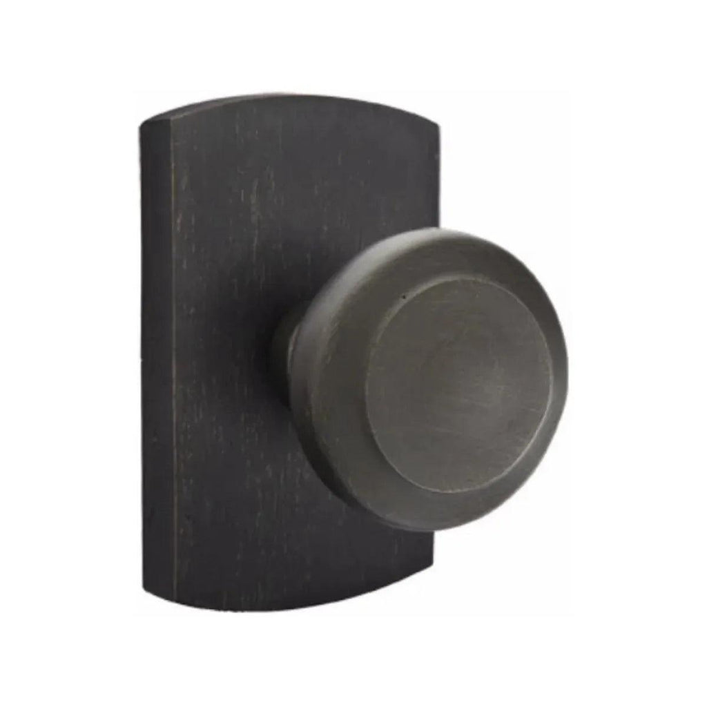 The Emtek Butte Knob with #4 Rosette exudes a rustic charm with its hand-forged texture and earthy tones. The gently curved Butte knob offers a comfortable and inviting grip, while the #4 rosette adds a touch of understated detail with its simple, geometric design. This knob isn't just functional hardware; it's a subtle design element that enhances the warmth and authenticity of your space. Imagine the smooth, cool feel of the knob in your hand, a quiet invitation to open and explore.