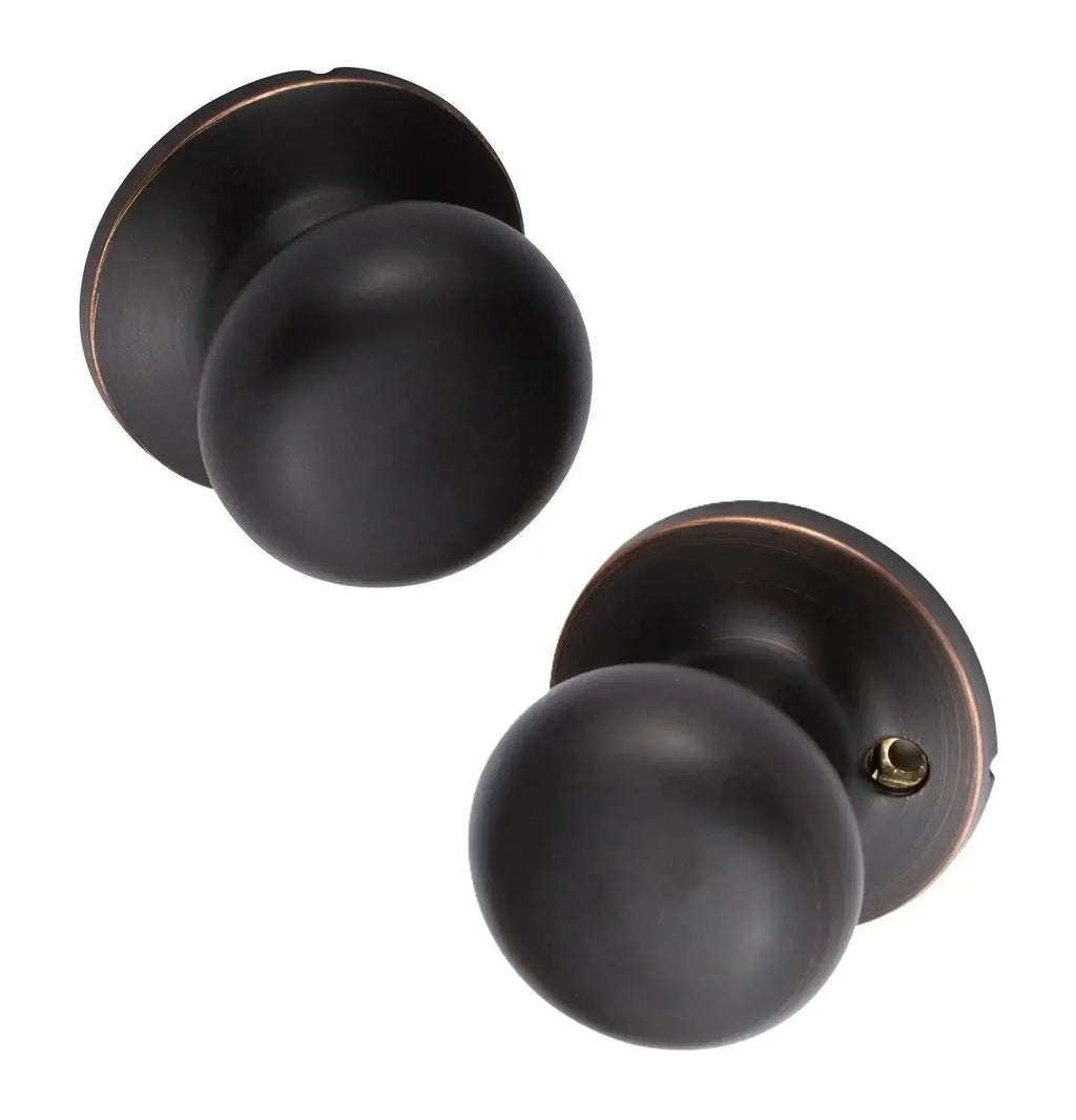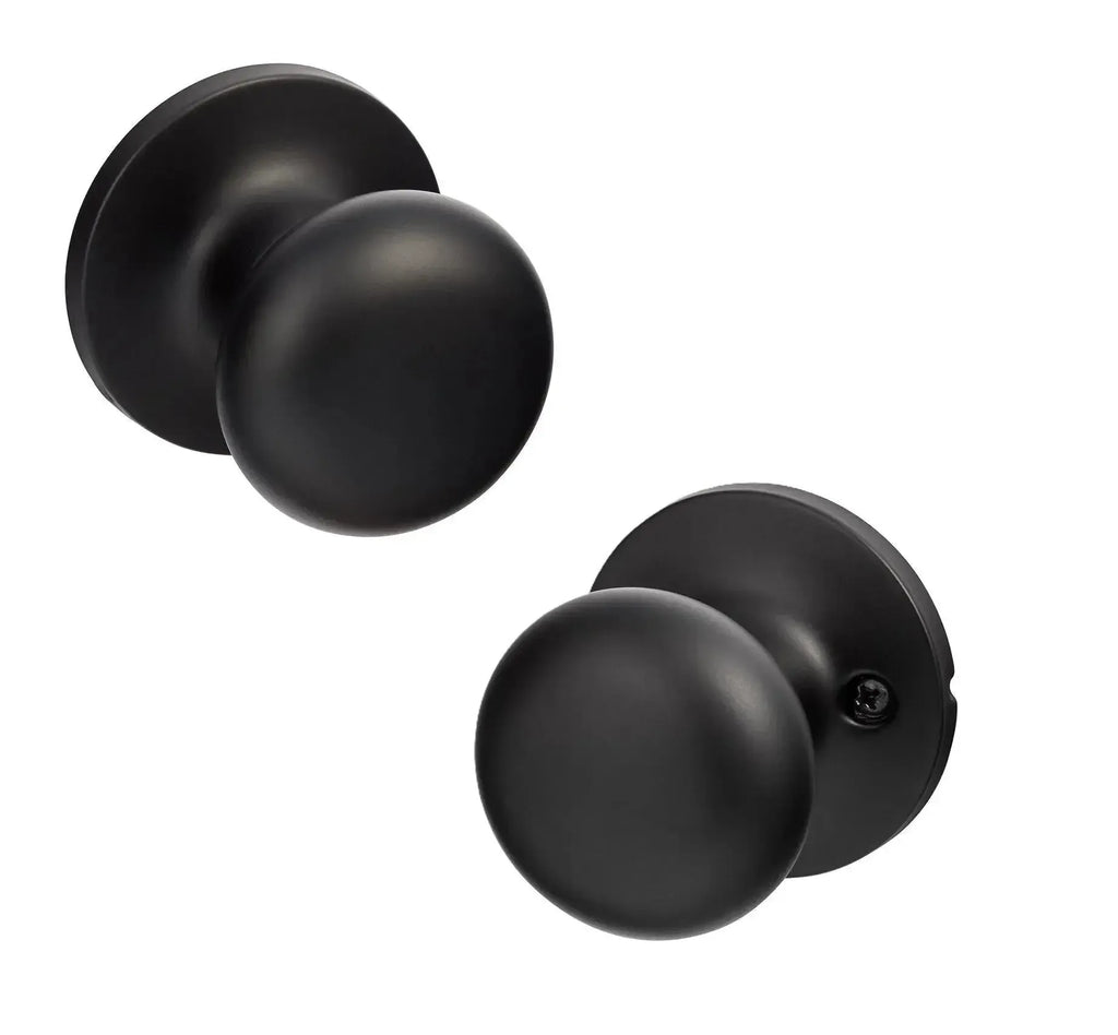 - Includes Two Door Knobs, Latch, Strike, and Installation Hardware