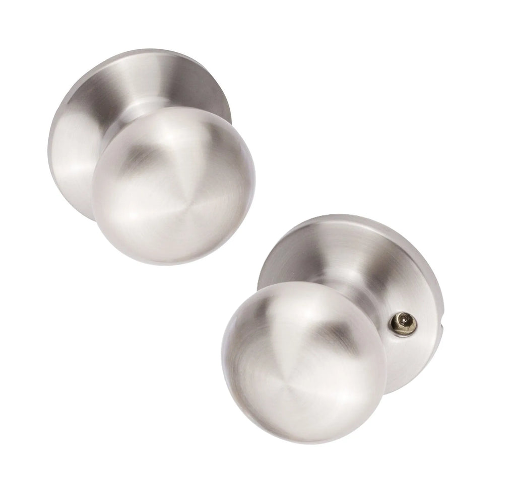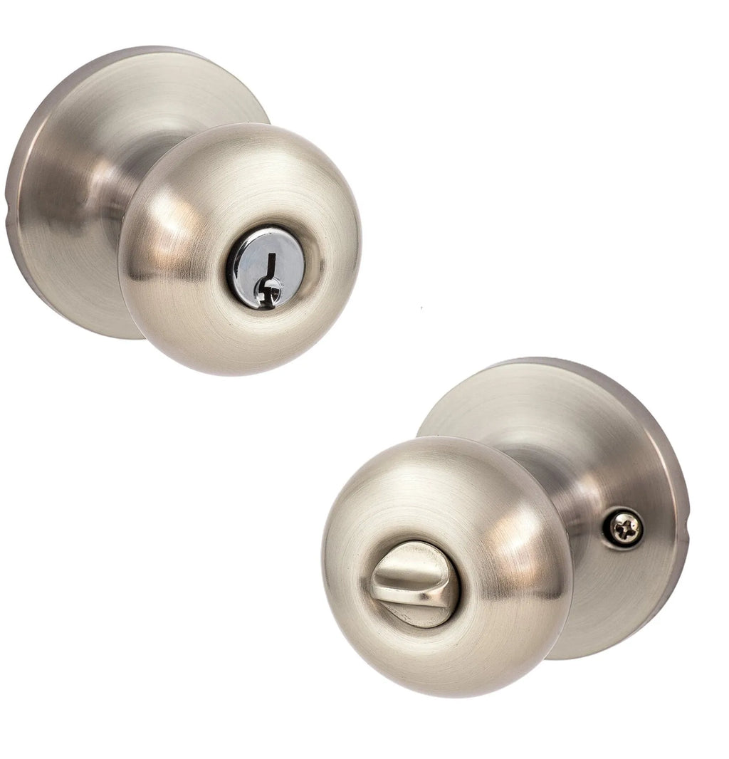 - Includes Two Door Knobs, Latch, Strike, and Installation Hardware
