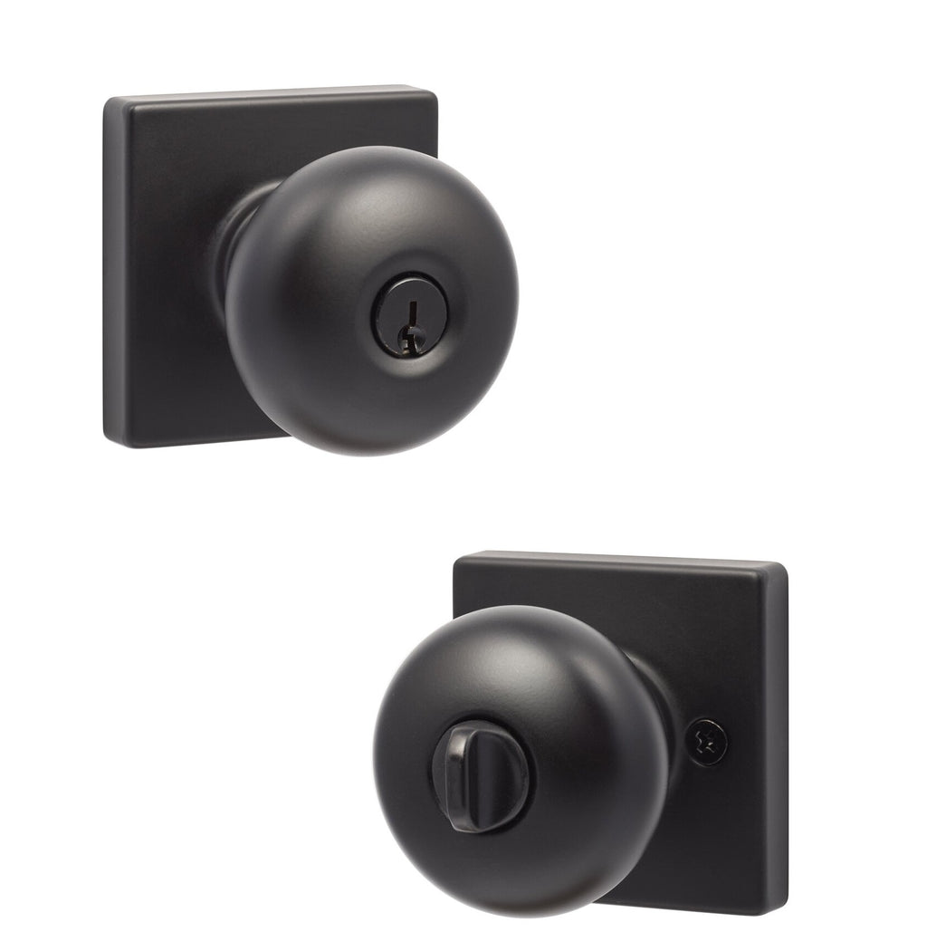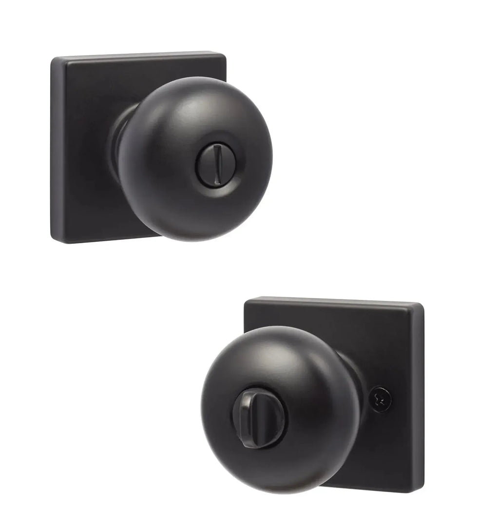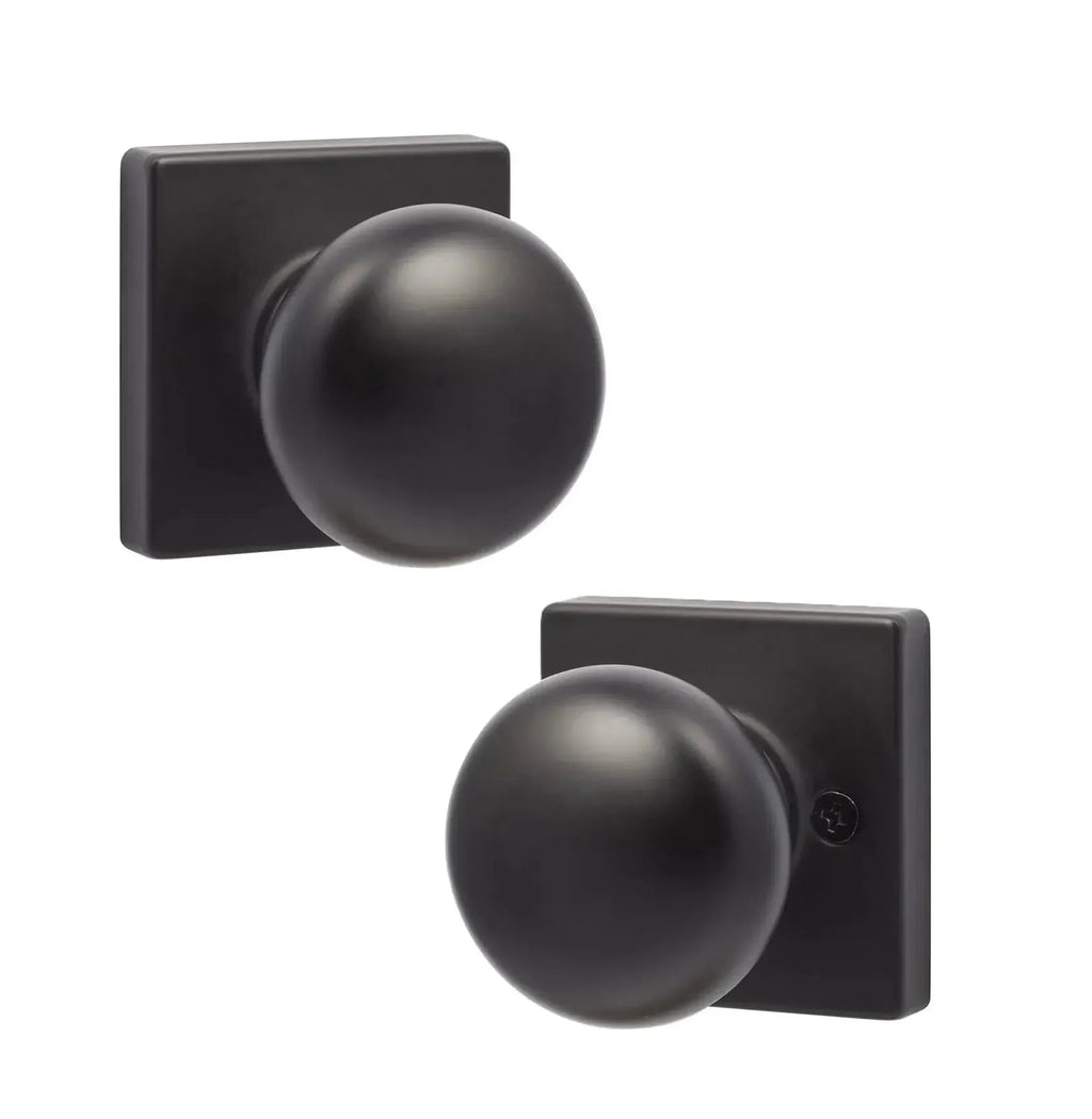 - Includes Two Door Knobs, Latch, Strike, and Installation Hardware