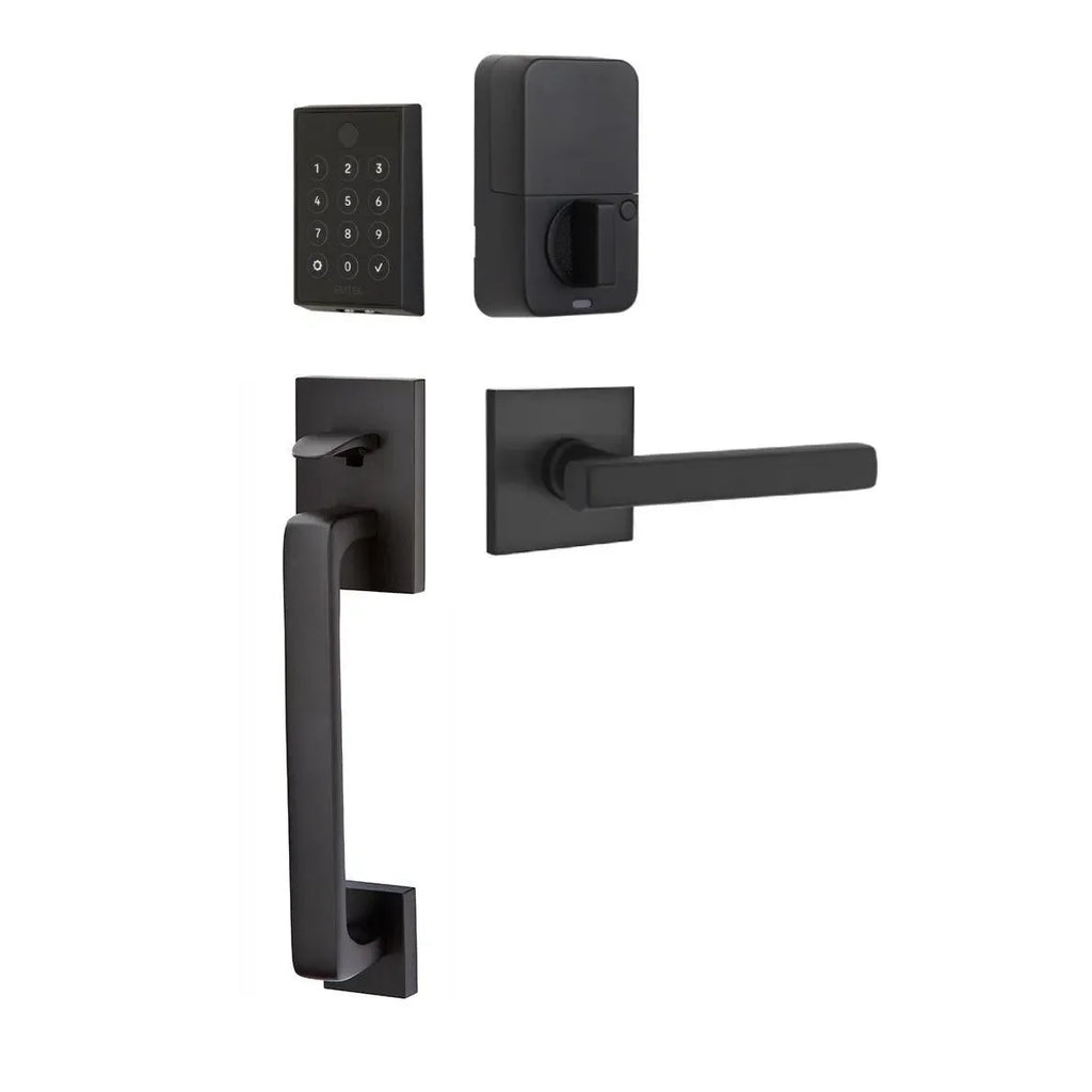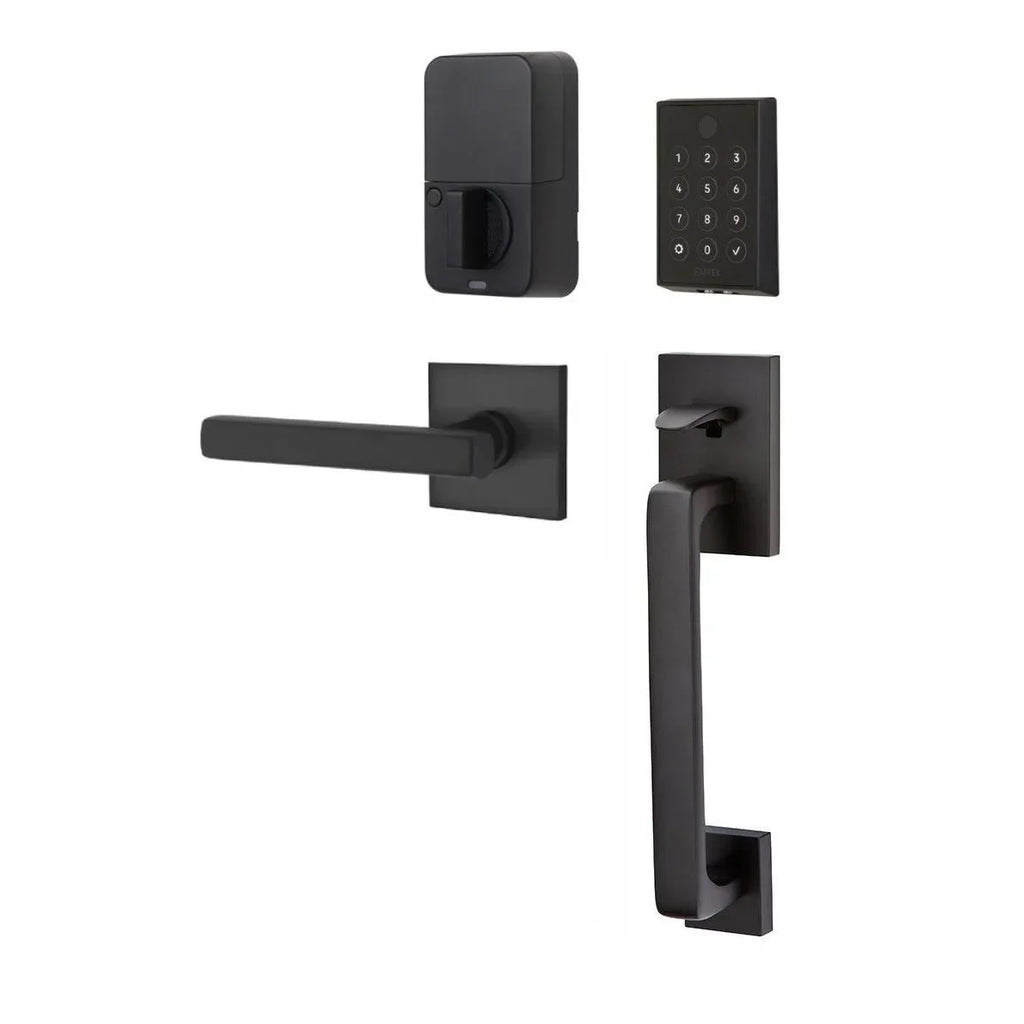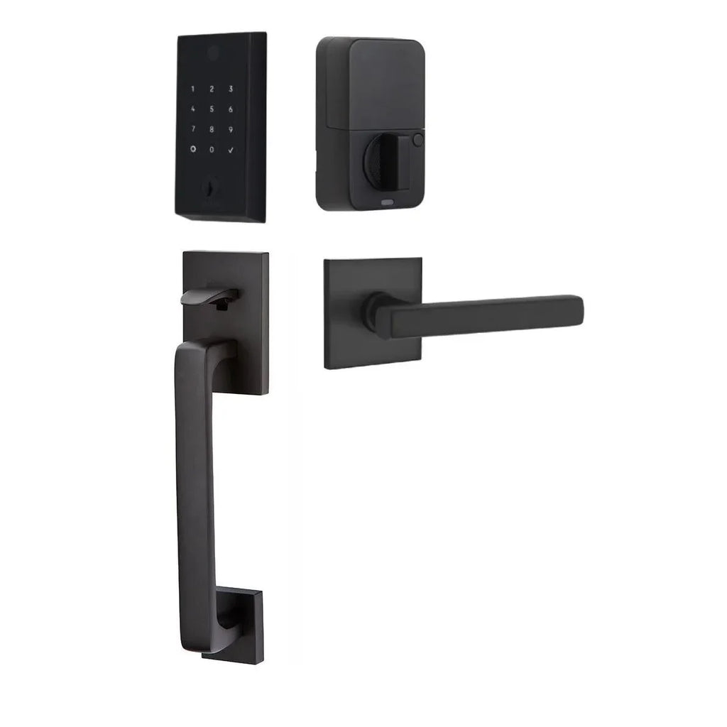 Say goodbye to keys and hello to smart, sophisticated security with the Emtek EMPowered 2. This set offers multiple key-free entry options, including a touchscreen keypad and smartphone app control via Bluetooth. The streamlined Baden grip makes a subtle yet powerful statement, offering a comfortable and contemporary feel. The interior Freestone Lever boasts a modern soft square profile, perfectly embodying the intersection of contemporary design and comfortable functionality. Emtek's commitment to quality is evident in the durable construction and elegant finishes. This entry set provides both enhanced security and sophisticated style for your peace of mind, adding a touch of modern elegance to your home.