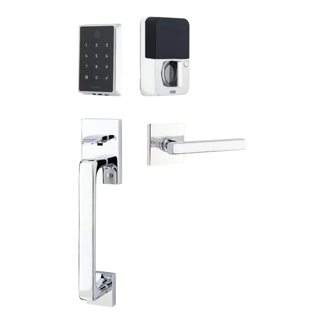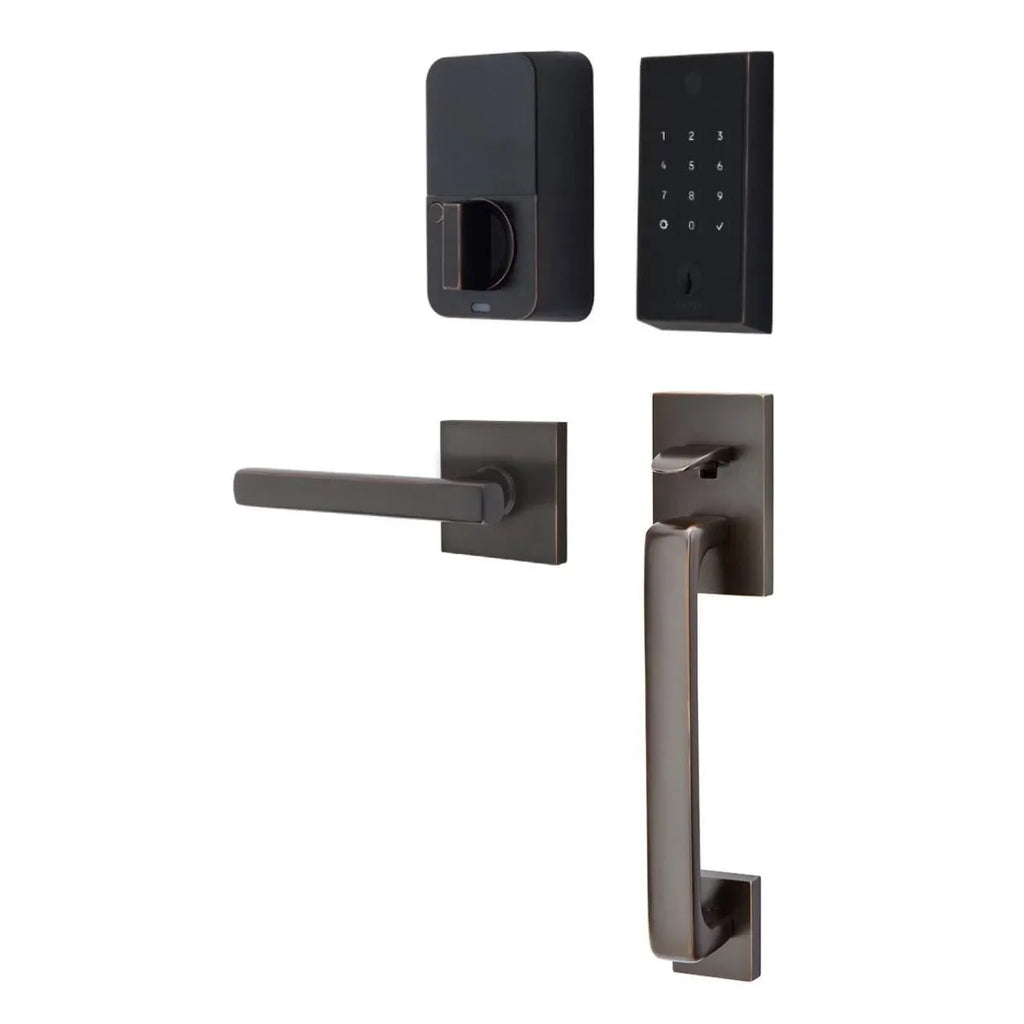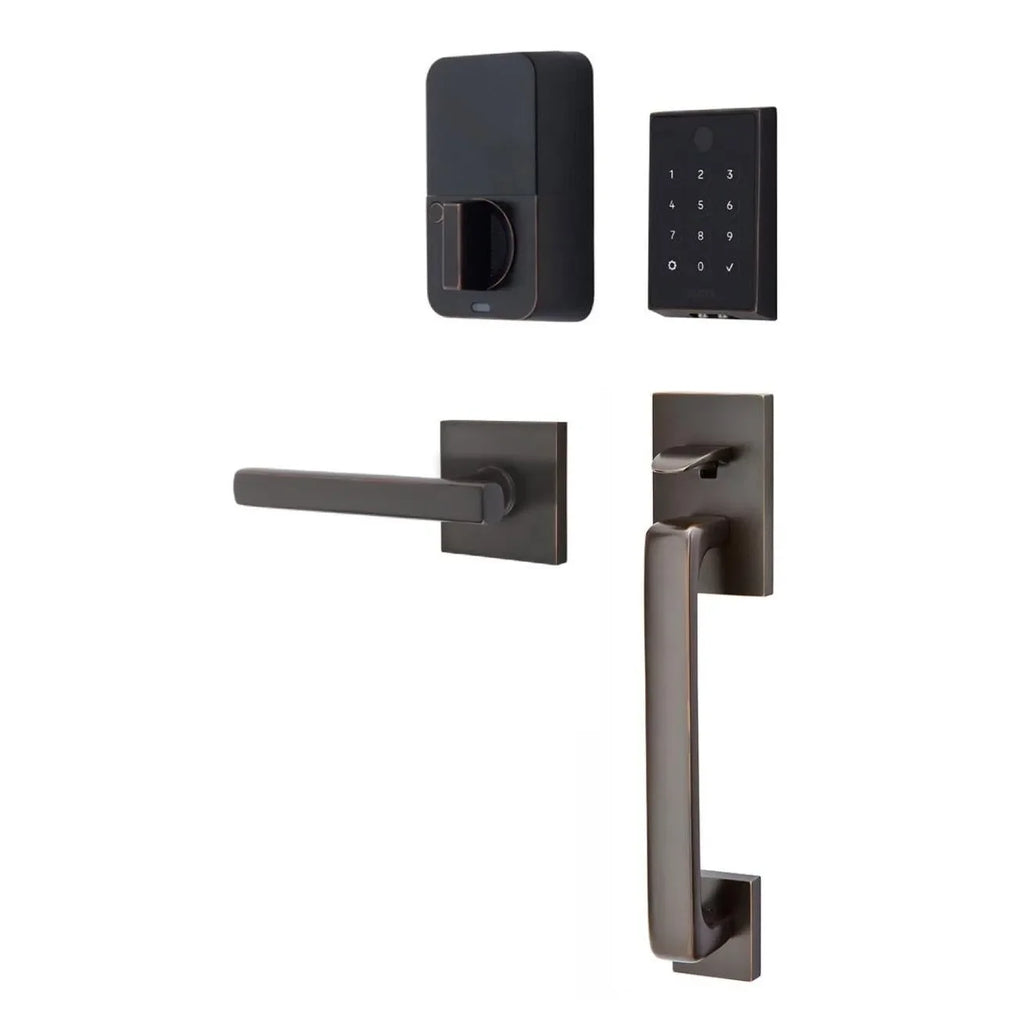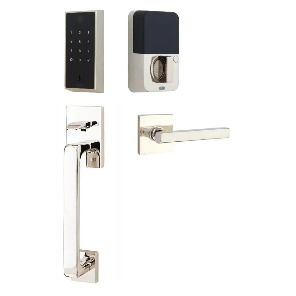Say goodbye to keys and hello to smart, sophisticated security with the Emtek EMPowered 2. This set offers multiple key-free entry options, including a touchscreen keypad and smartphone app control via Bluetooth. The streamlined Baden grip makes a subtle yet powerful statement, offering a comfortable and contemporary feel. The interior Freestone Lever boasts a modern soft square profile, perfectly embodying the intersection of contemporary design and comfortable functionality. Emtek's commitment to quality is evident in the durable construction and elegant finishes. This entry set provides both enhanced security and sophisticated style for your peace of mind, adding a touch of modern elegance to your home.