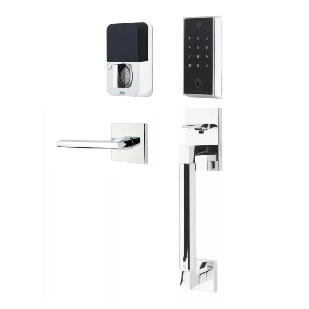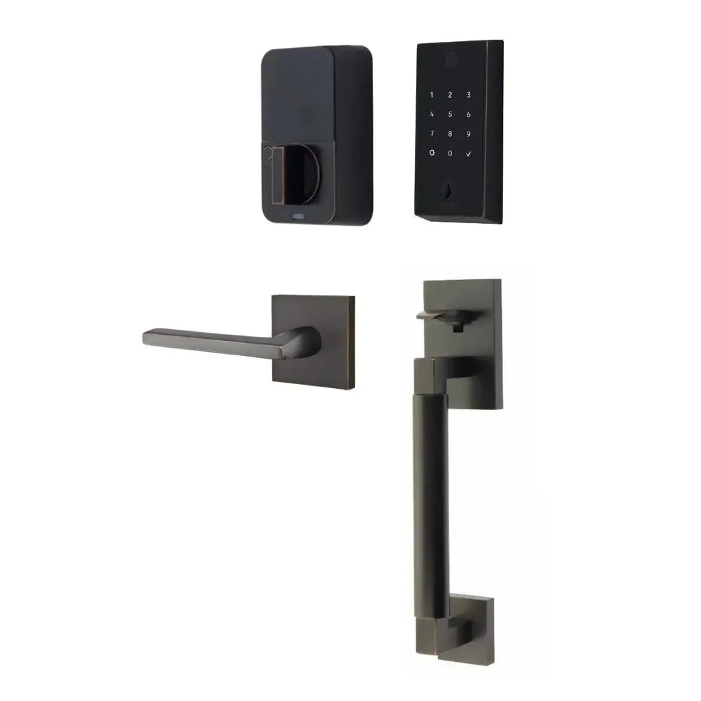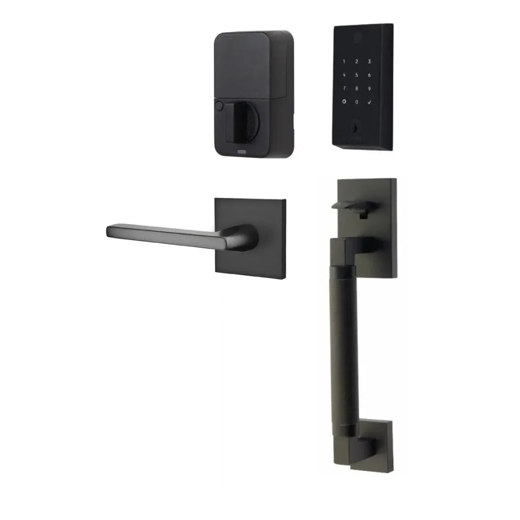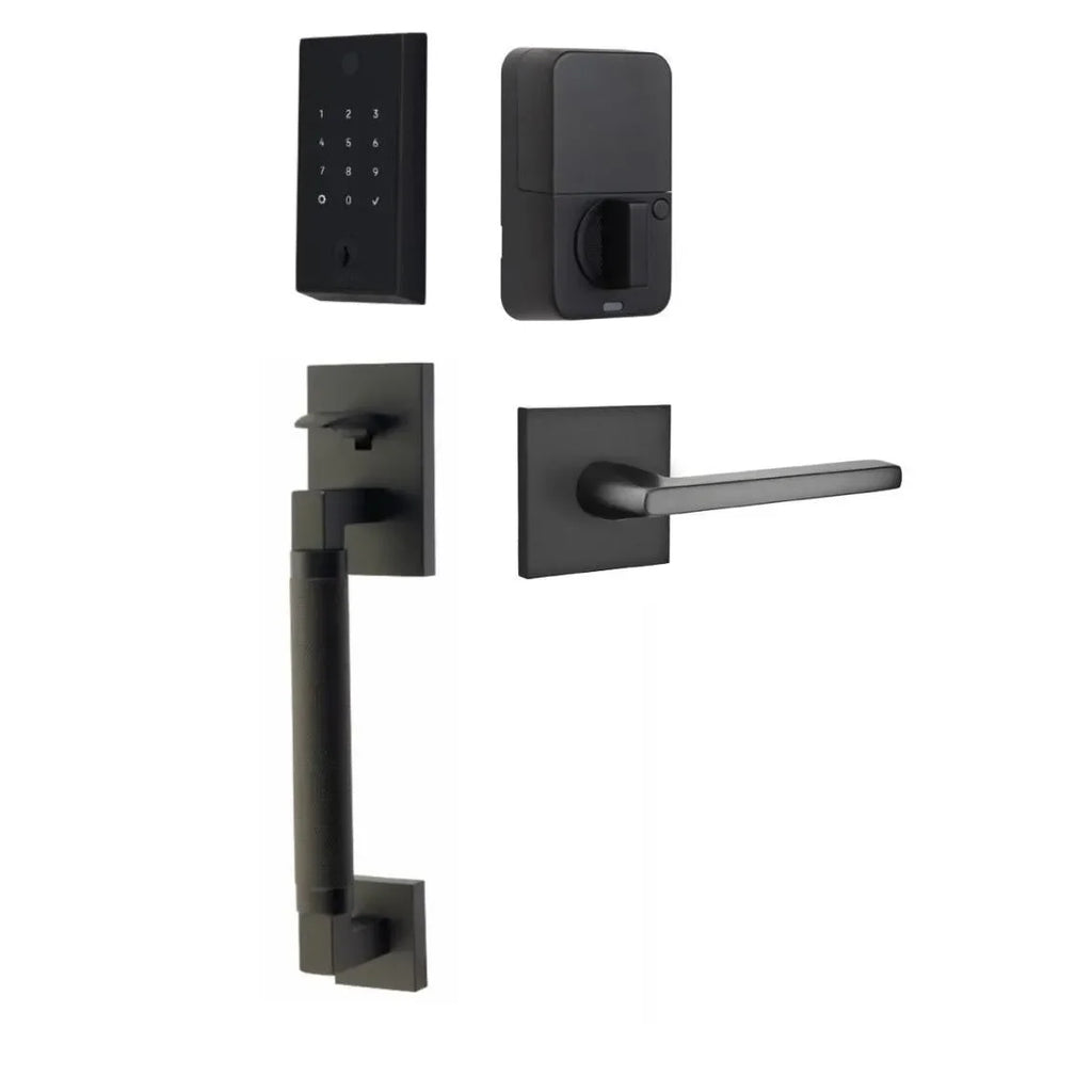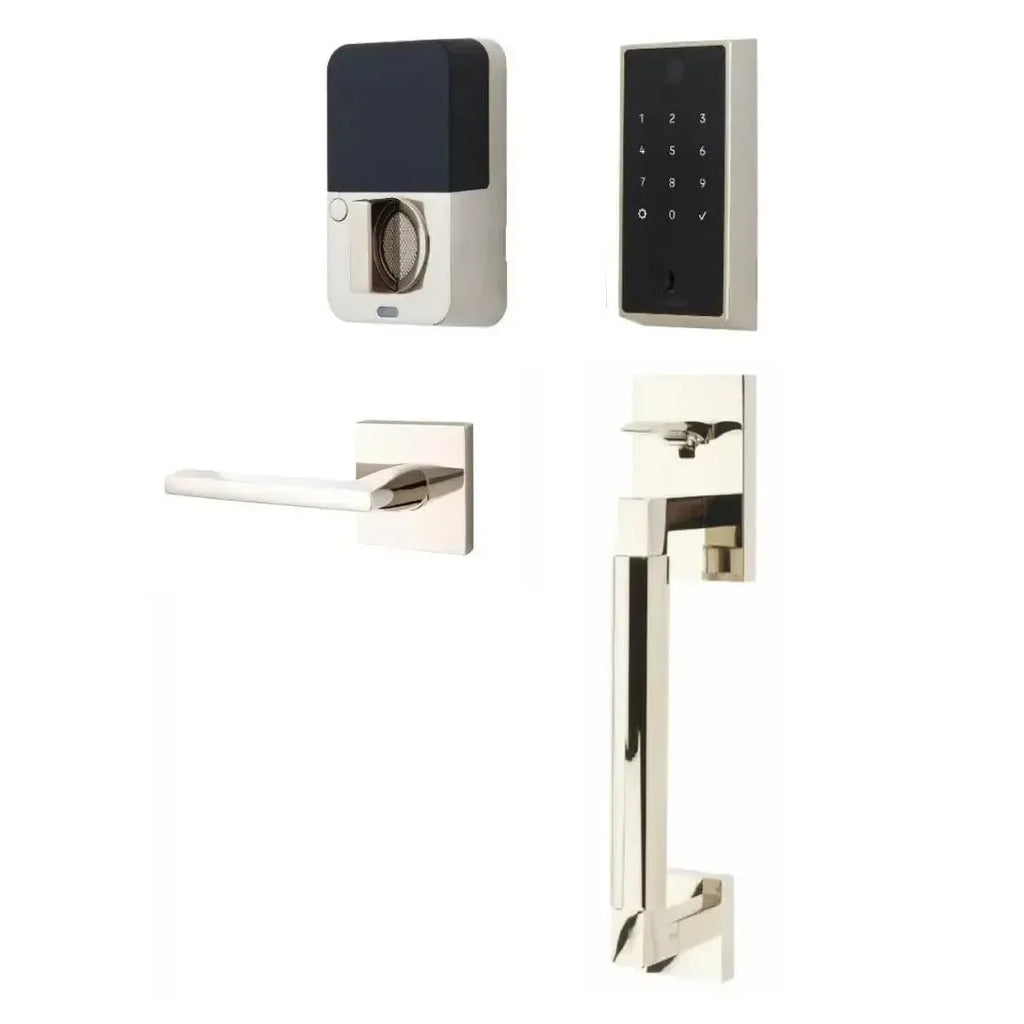Discover the convenience and security of the Emtek EMPowered 2. This key-free entry set features the robust Hercules Smooth Grip exterior handle and the stylish Helios lever on the interior. Manage access effortlessly with the touchscreen keypad or your smartphone, creating temporary codes and monitoring activity. Emtek's quality construction ensures lasting beauty and reliable performance.