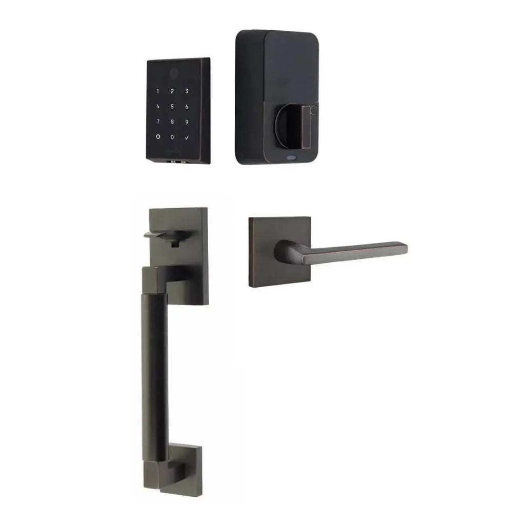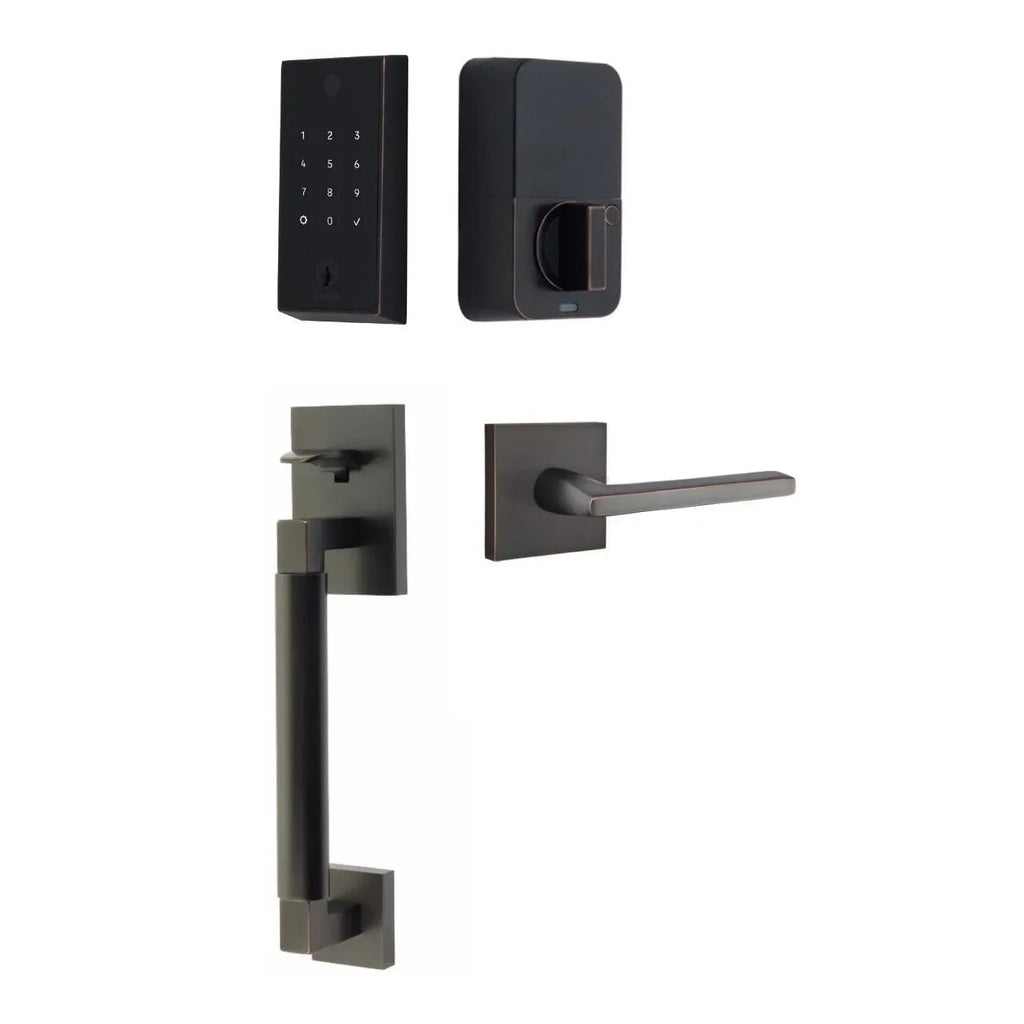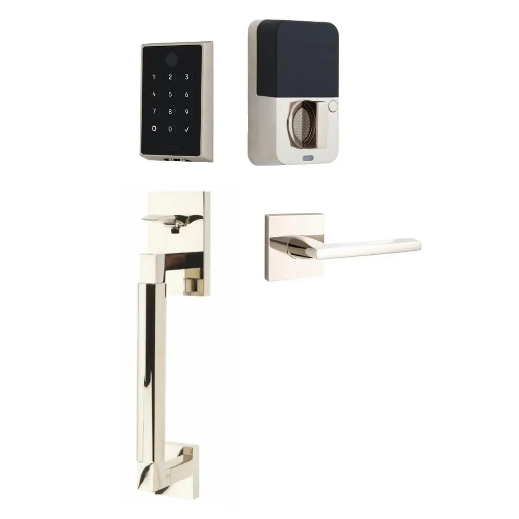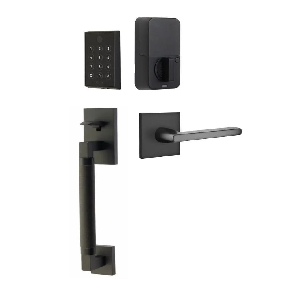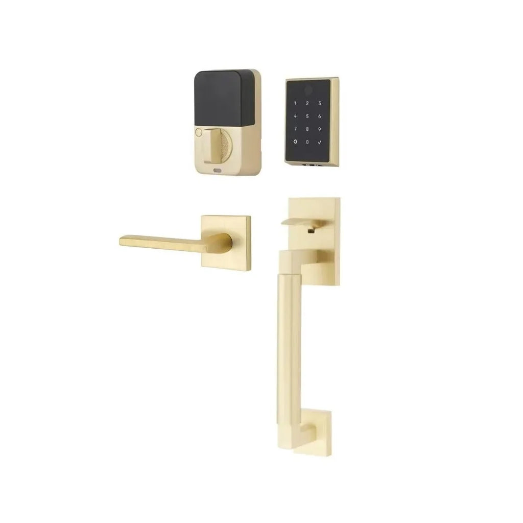 Discover the convenience and security of the Emtek EMPowered 2. This key-free entry set features the robust Hercules Smooth Grip exterior handle and the stylish Helios lever on the interior. Manage access effortlessly with the touchscreen keypad or your smartphone, creating temporary codes and monitoring activity. Emtek's quality construction ensures lasting beauty and reliable performance.