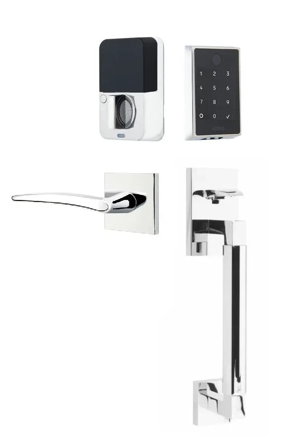 The Emtek EMPowered 2 Touch Entry Set delivers modern smart lock functionality within a high-end entry handle. The exterior features the sleek Hercules Smooth Grip handleset, while the interior is fitted with the minimalist Poseidon Lever. This advanced set uses the EMPowered 2 smart lock technology, offering keyless entry via a backlit touchscreen keypad or an ultra-fast biometric fingerprint scanner. Using the Yale Access App over Bluetooth, you can manage access, view activity, and utilize features like Auto-Lock, with an optional Wi-Fi upgrade available for full remote access. Built from solid brass, this entry set provides robust security and sophisticated style for your front door.