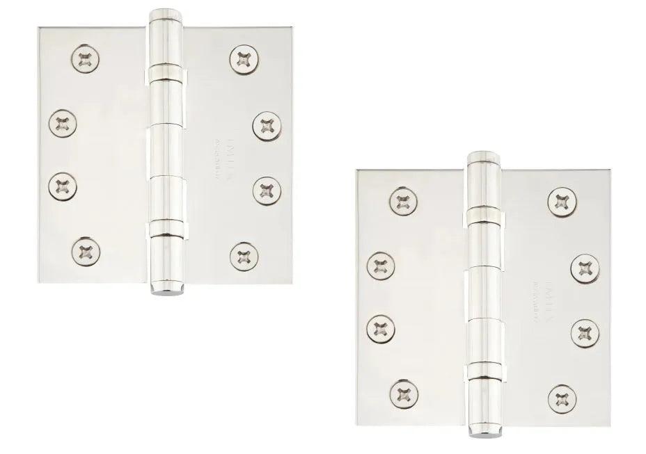 The Emtek Heavy Duty Solid Brass Ball Bearing Hinge, 4" x 4" with Square Corners combines durability with refined design, making it a smart choice for heavier doors. Constructed from premium solid brass, it features ball bearings that reduce friction for quieter, smoother operation over time. The square corners provide a classic, clean look and an easy fit for pre-routed doors, making this hinge ideal for both residential and light commercial use.