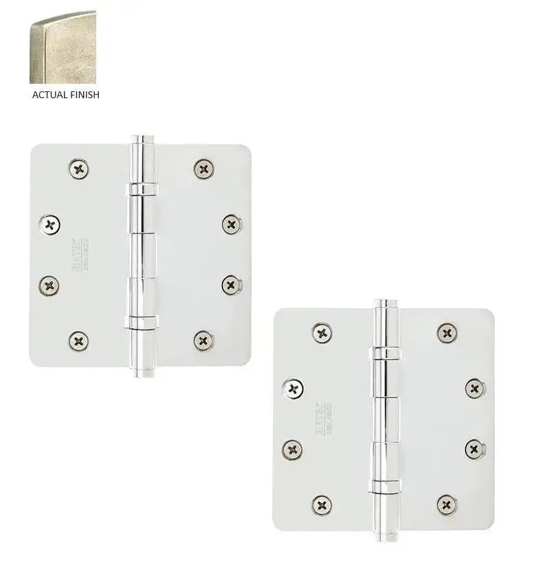 The Emtek Heavy Duty Steel Ball Bearing Hinge, 4" x 4" with 1/4" Radius Corners is designed for strength, durability, and smooth operation on heavier doors. Constructed from solid steel, it features ball bearings that minimize friction for quieter, longer-lasting performance. The 1/4" radius corners allow for quick installation on pre-routed doors, making it an excellent choice for both residential and light commercial use.