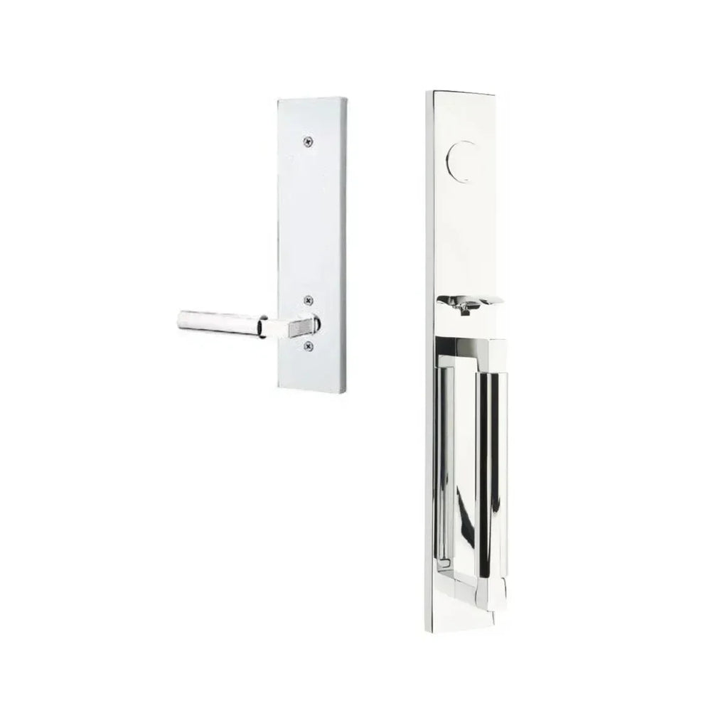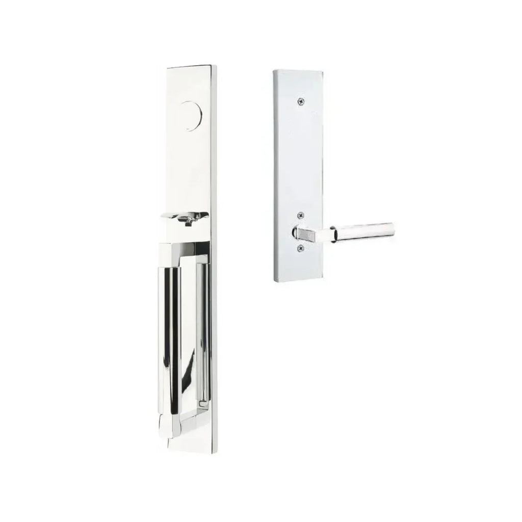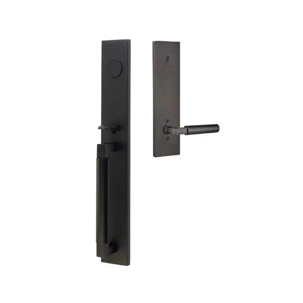 Enjoy the streamlined strength and modern classic appeal of the Emtek Hercules Smooth Full Length Tubular Entry Set with Hercules Lever. The clean lines and smooth surfaces of both the backplate and lever create a cohesive and contemporary aesthetic. The substantial feel of the lever in your hand inspires confidence and ease of use. This handleset isn't merely functional; it's a testament to the power of simple, well-executed design.