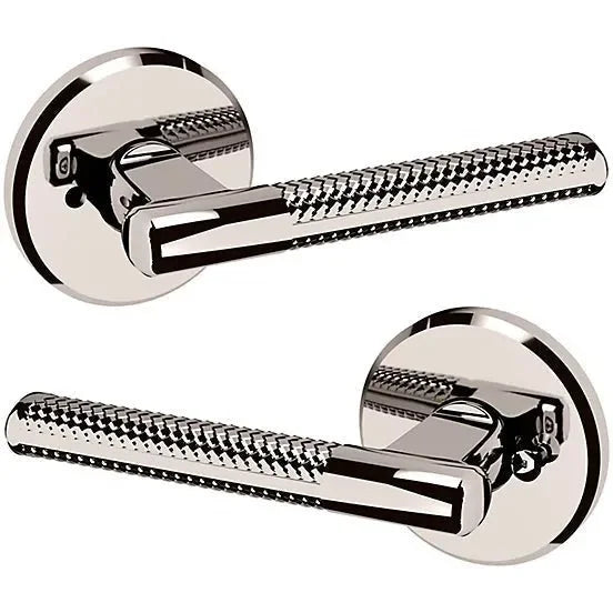 - Lever set paired with roses without a privacy or locking feature to fit the 2.125" standard door preparation.