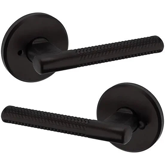 - Lever set paired with roses with a privacy lock to both close and secure any door with the 2.125" standard door preparation.
