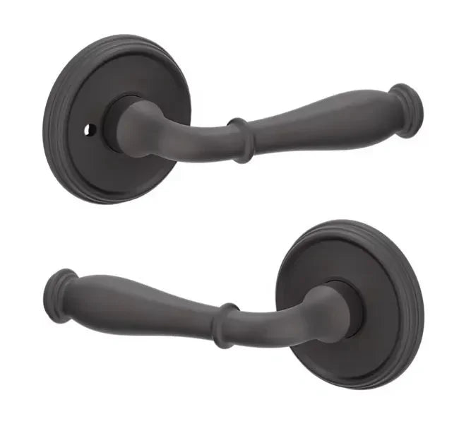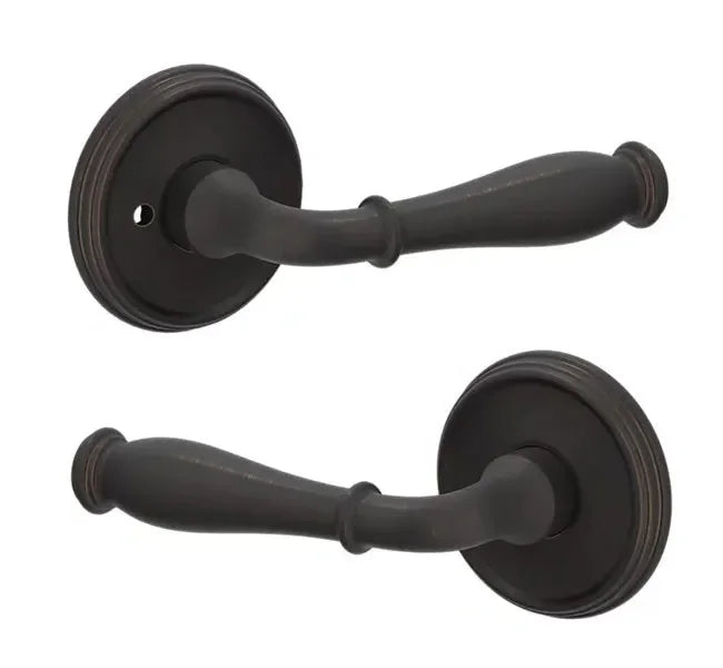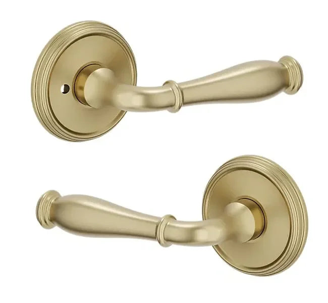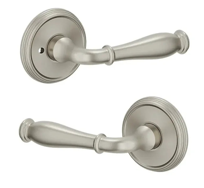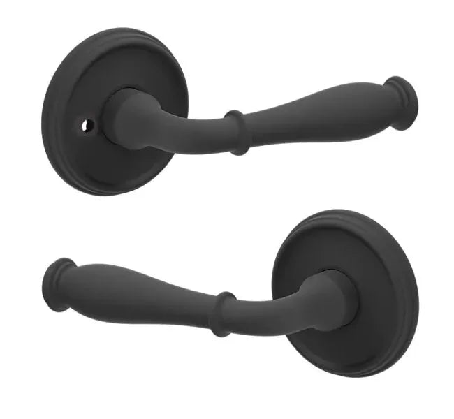- Lever set paired with roses with a privacy lock to both close and secure any door with the 2.125" standard door preparation.