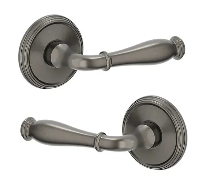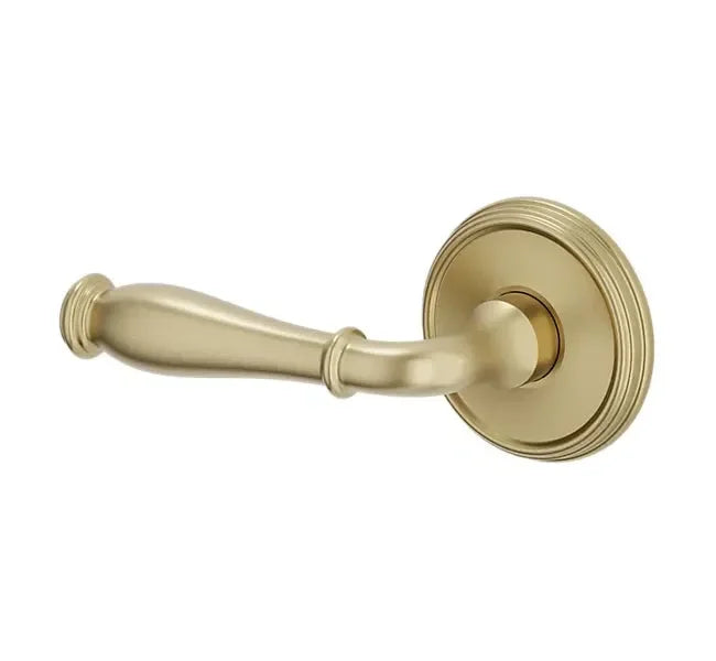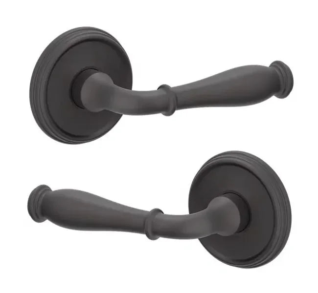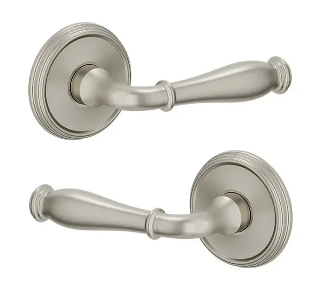 - Lever set paired with roses without a privacy or locking feature to fit the 2.125" standard door preparation.