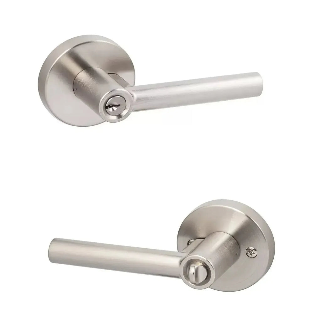 - Privacy levers are ideal for bedroom and bathrooms. Locked by push pin. Unlocked by push pin, lever turn, or emergency pin outside.