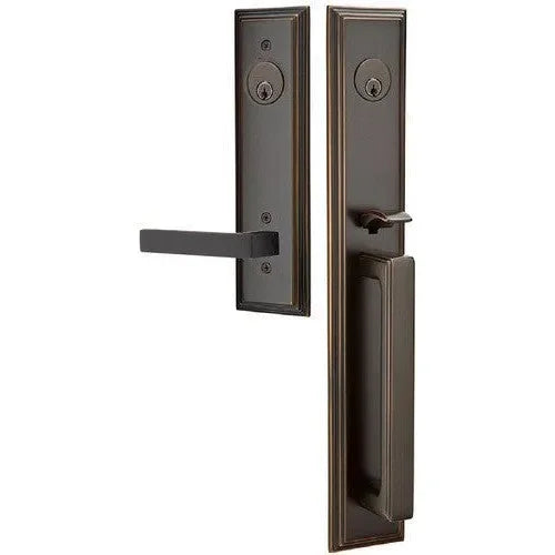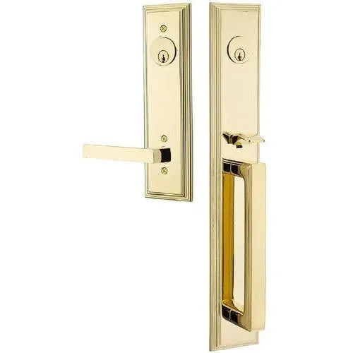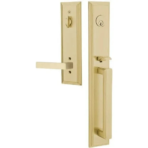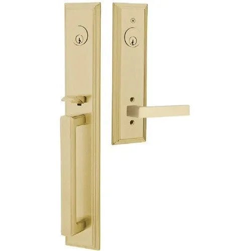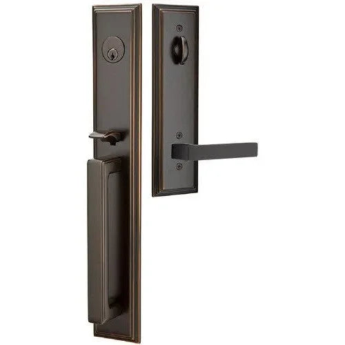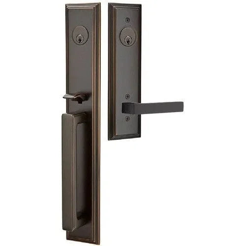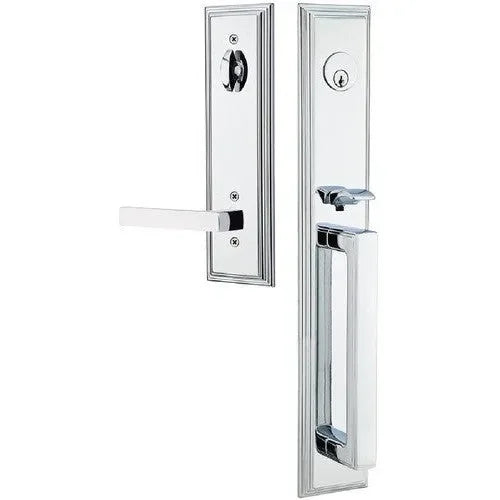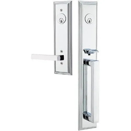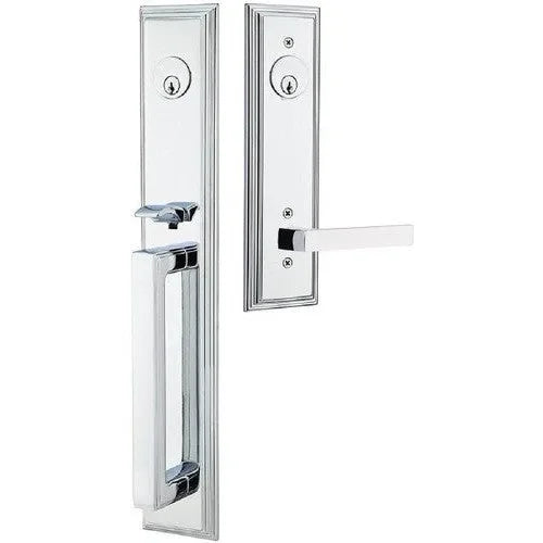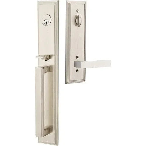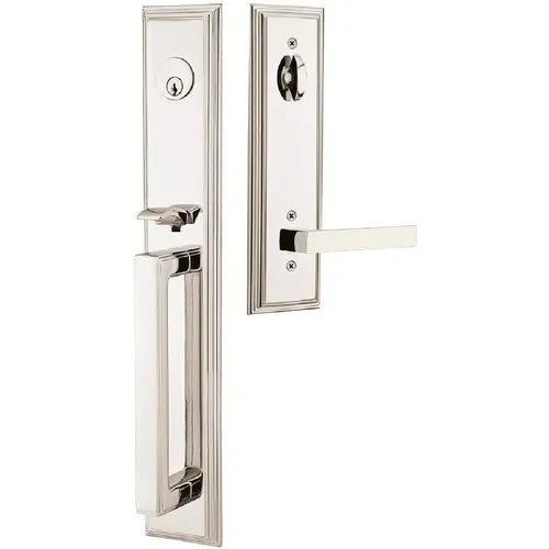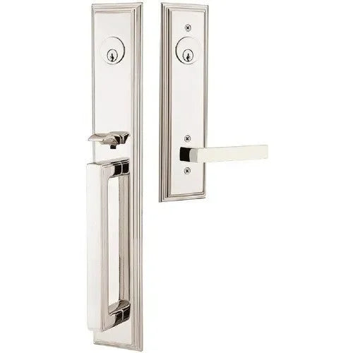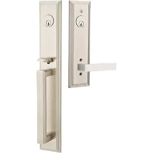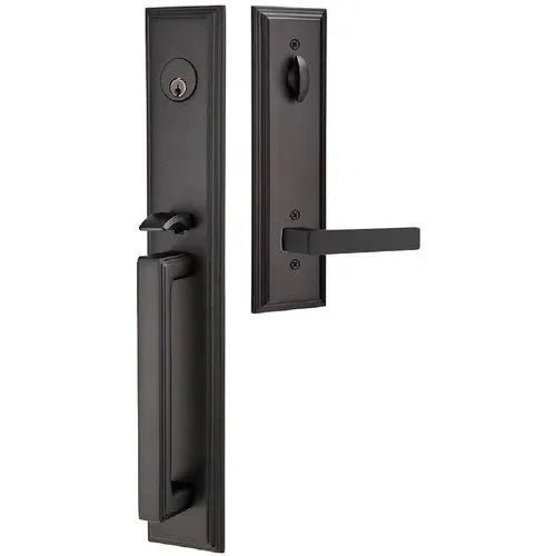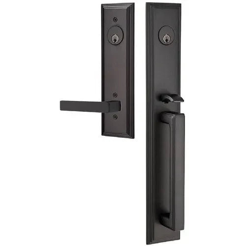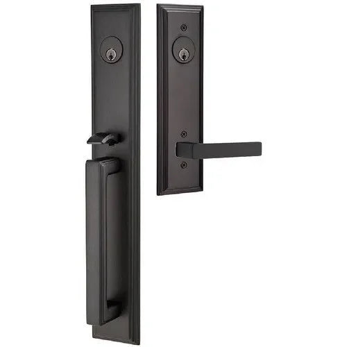 The Emtek Melrose Tubular Entrance Handleset with Dumont Lever offers modern elegance and a welcoming touch to your home's entrance. The clean lines of the Melrose backplate complement the sleek, minimalist design of the Dumont lever, creating a harmonious and sophisticated aesthetic. This handleset isn't just about security; it's about making a first impression, setting the tone for what lies within. Imagine the smooth, satisfying feel of the lever in your hand, a subtle invitation to step inside.