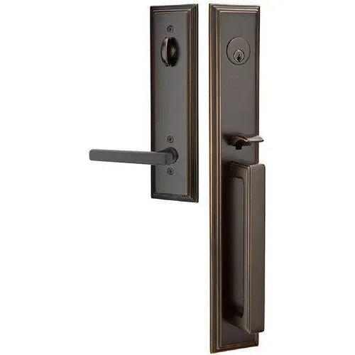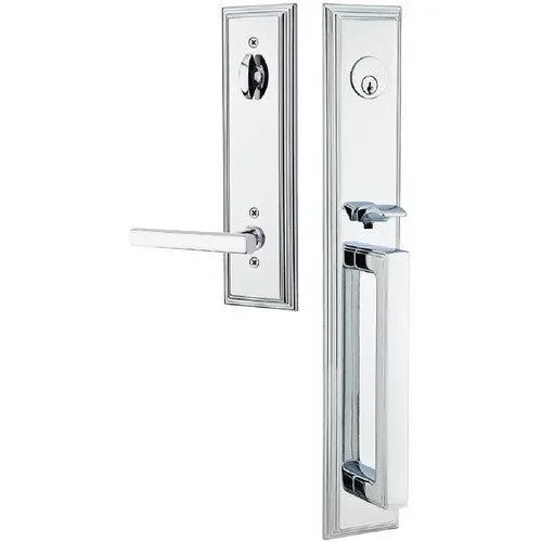 Experience the sculpted simplicity and tactile delight of the Emtek Melrose Tubular Entrance Handleset with Freestone Lever. The interplay of smooth lever and detailed backplate creates a visual harmony that is both elegant and inviting. The weight and feel of the lever in your hand offer a moment of quiet satisfaction, a small but significant detail that elevates the everyday experience of entering your home. This handleset isn't merely functional; it's a subtle reminder of the beauty of well-crafted objects.
