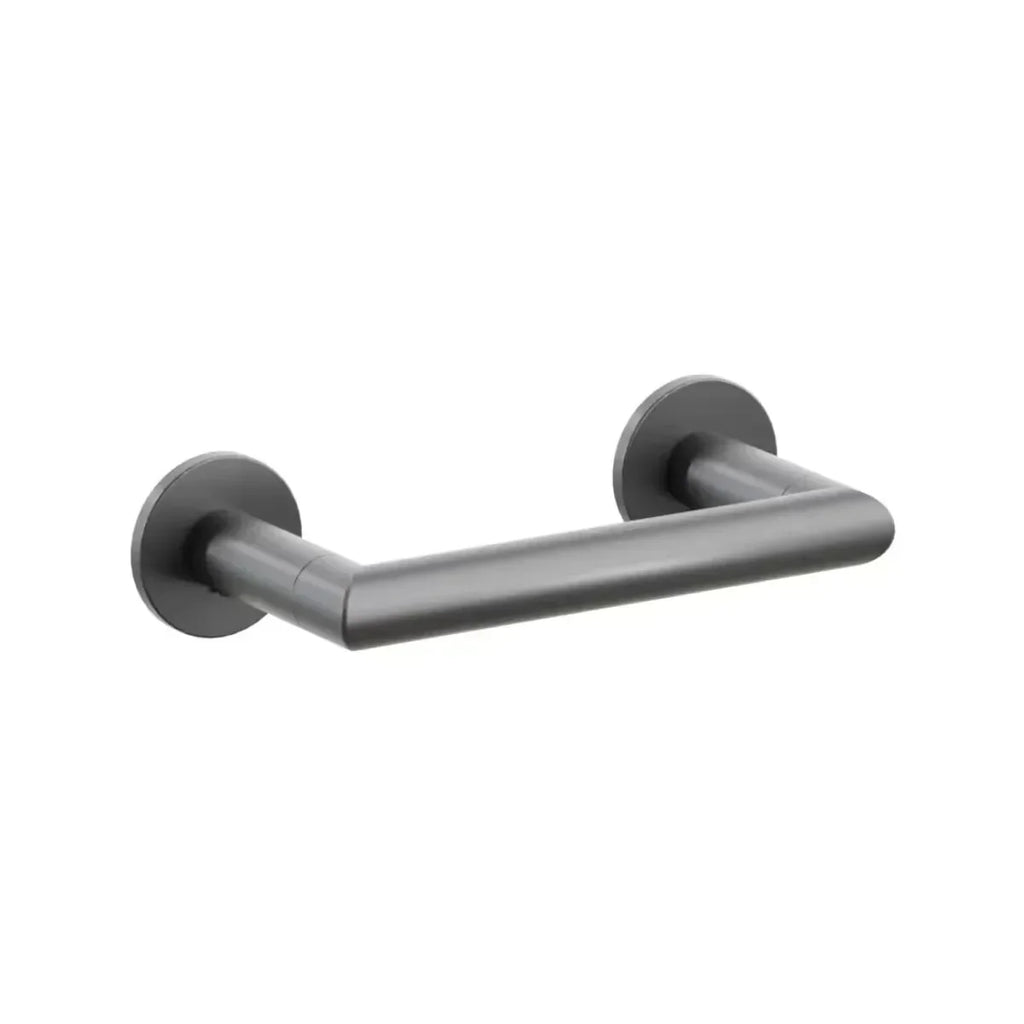 This Emtek Modern Tubular Brass Paper Holder features an innovative pivoting double post design with sleek small disc rosettes for effortless one-handed paper replacement. Crafted from premium brass construction, this sophisticated toilet paper holder provides secure hold while offering convenient access and maintaining its lustrous finish over time. The modern tubular design paired with minimalist disc rosettes creates a clean, contemporary aesthetic that enhances any bathroom décor.