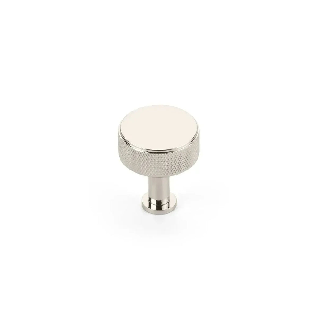 Featuring a classic round shape with finely knurled detailing, this knob offers a bold, tactile look that works beautifully in kitchens, bathrooms, and more.