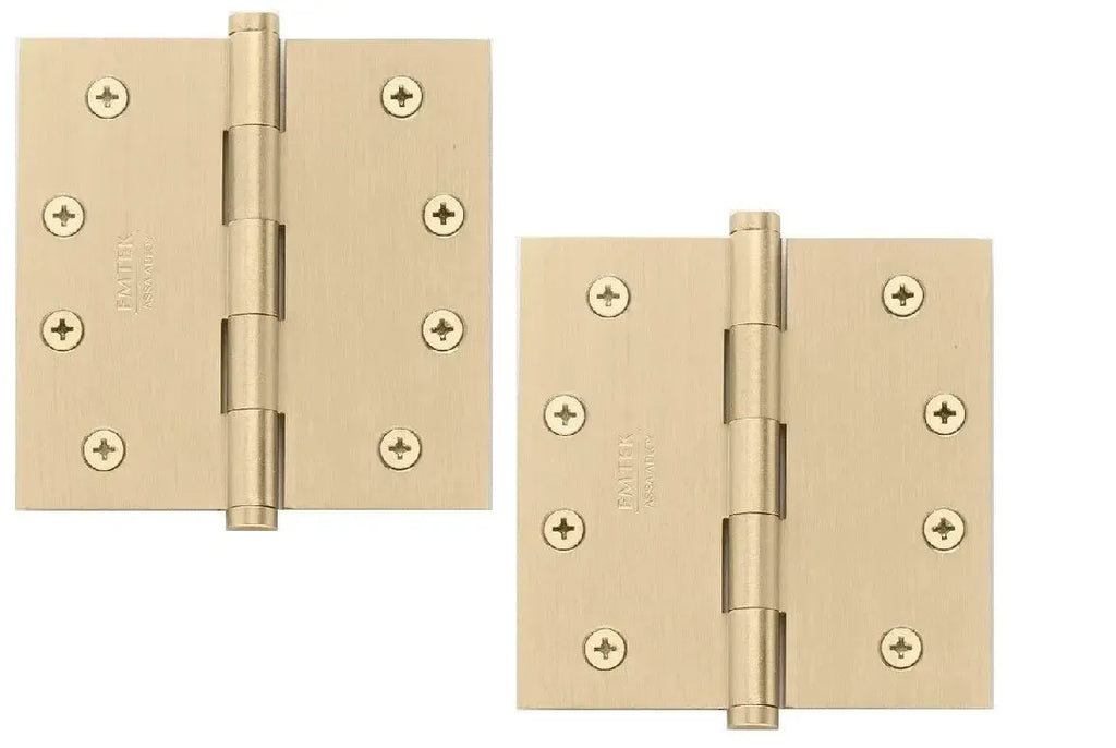 Residential Duty Solid Brass Plain Bearing Hinge, 4" x 4" with Square Corners