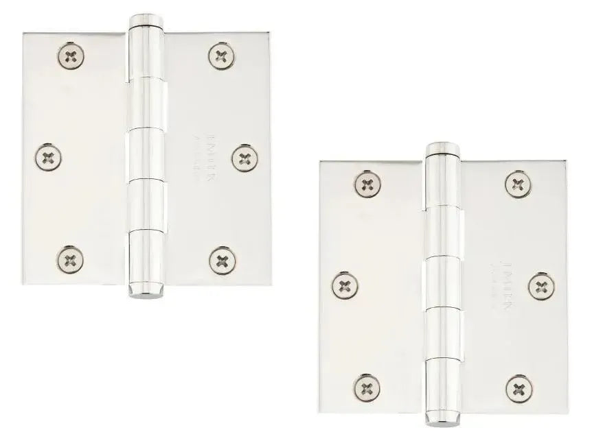 The Emtek Residential Duty Steel Plain Bearing Hinge, 3.5" x 3.5" with Square Corners is built for everyday reliability on standard residential doors. Made from durable steel with a plain bearing design, it ensures smooth movement and dependable performance. The square corner profile provides a classic, clean look while fitting easily into pre-routed doors.