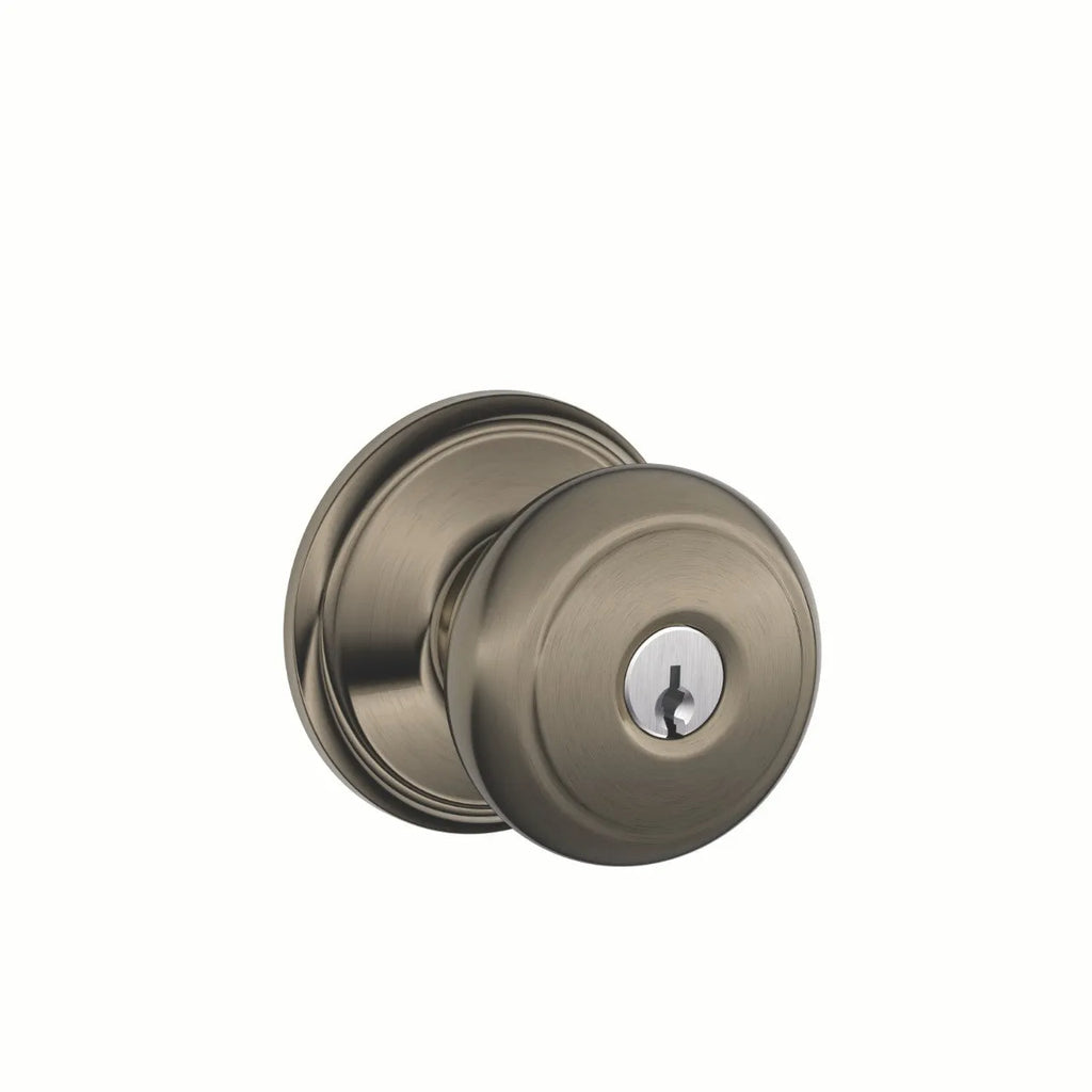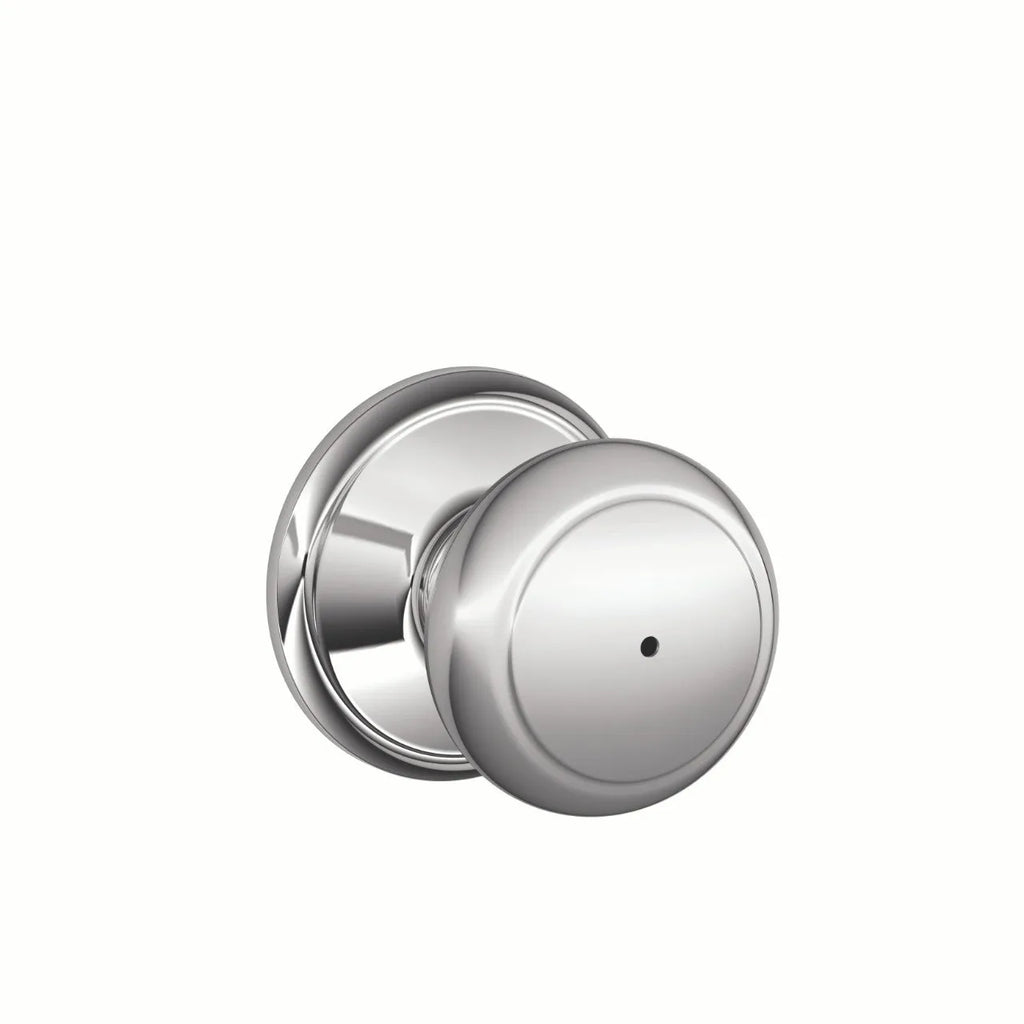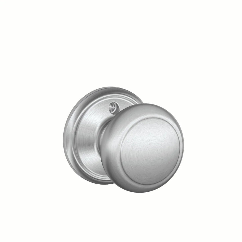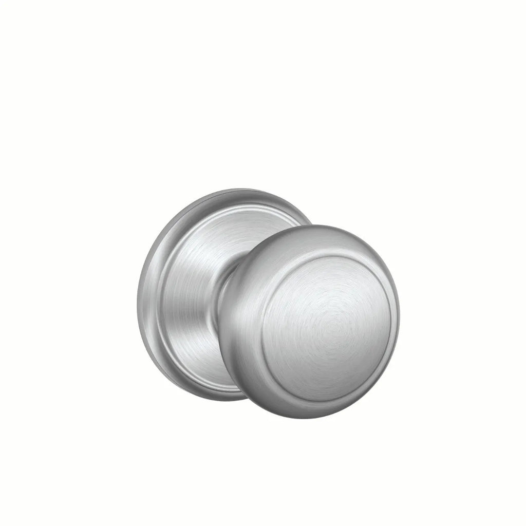 The Schlage Andover Knob with Standard Rosette is a timeless classic that combines simplicity, comfort, and durability. Its smooth, round shape offers an easy grip and a clean, versatile look that complements a wide range of interior styles. Built for everyday reliability and designed to operate smoothly, it’s a perfect choice for bedrooms, bathrooms, or any room where dependable style meets function.