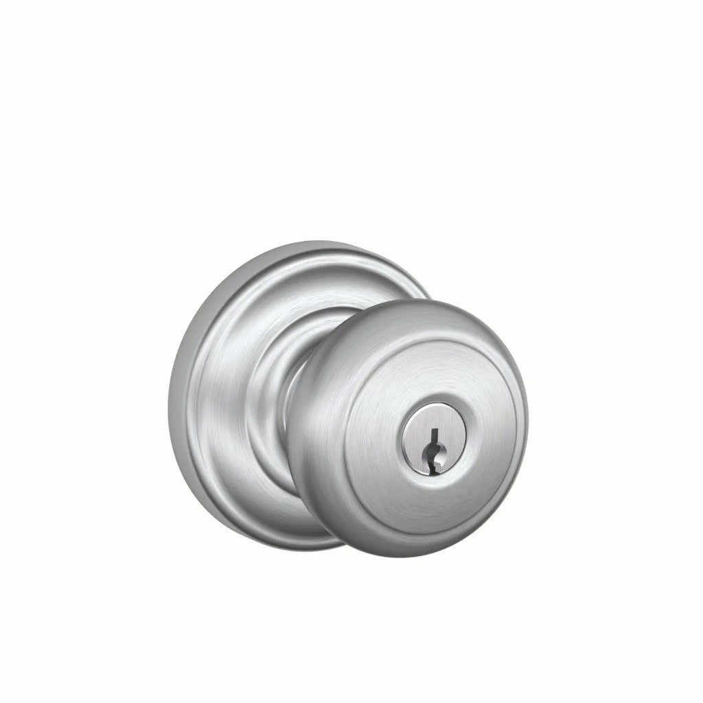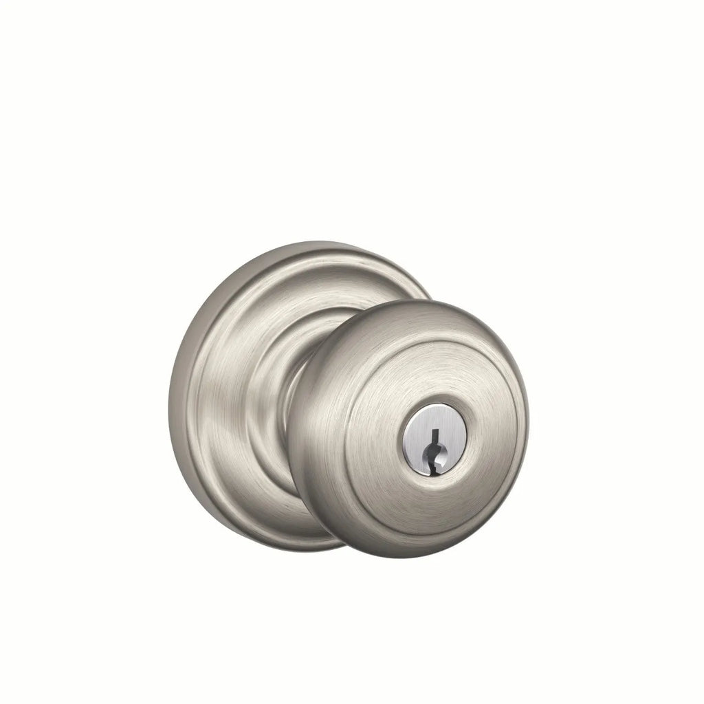 The Schlage Andover Knob with Andover Rosette is a timeless classic that combines simplicity, comfort, and durability. Its smooth, round shape offers an easy grip and a clean, versatile look that complements a wide range of interior styles. Built for everyday reliability and designed to operate smoothly, it’s a perfect choice for bedrooms, bathrooms, or any room where dependable style meets function.