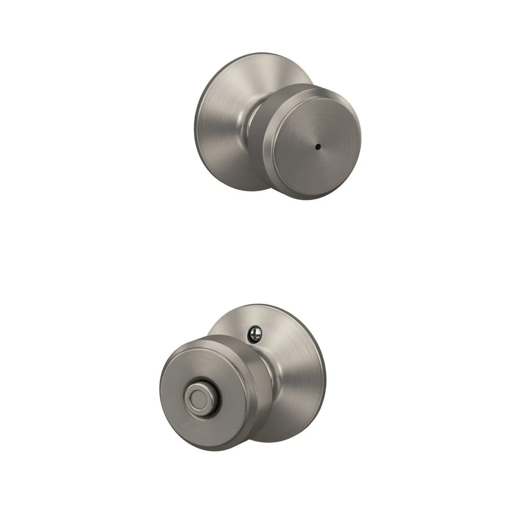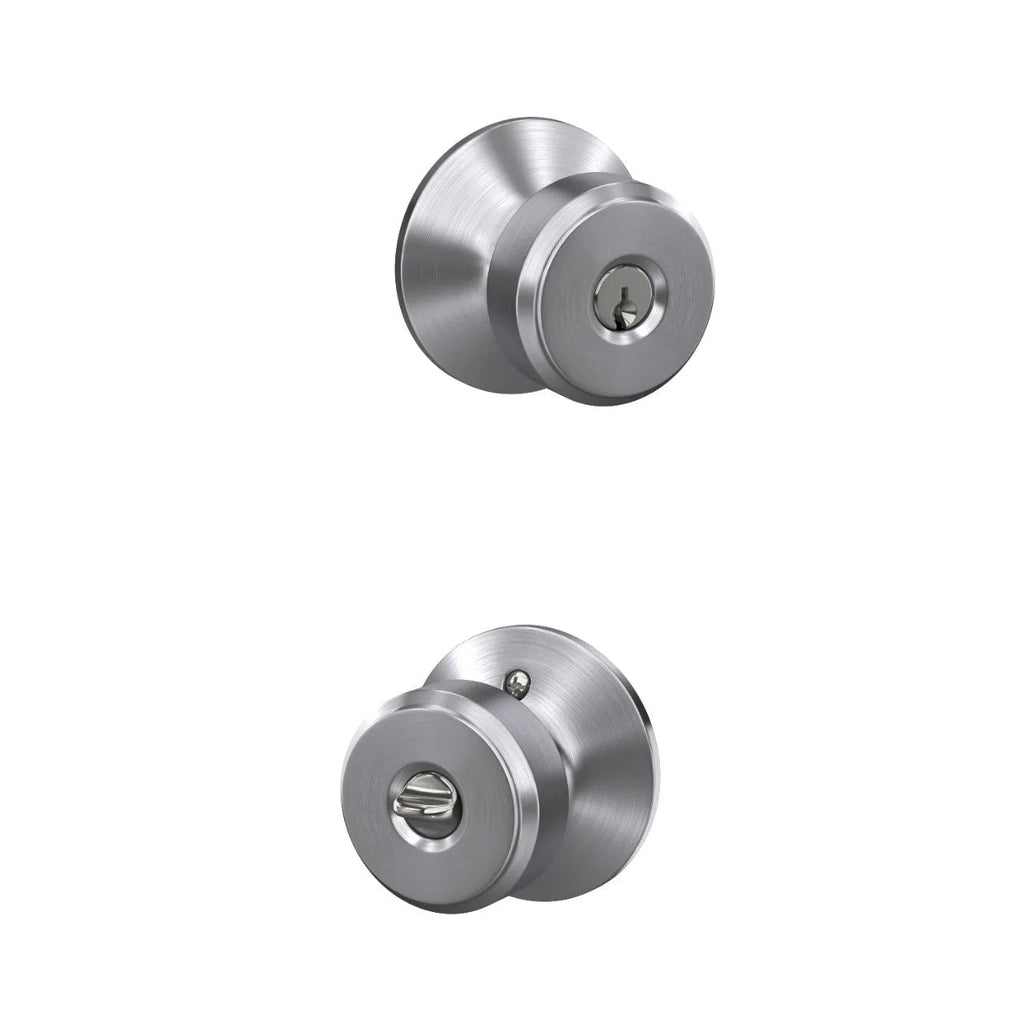 The Schlage Bowery Knob is a modern take on a classic round design, offering a simple, versatile look that works across a wide range of interior styles. With its smooth spherical shape and durable construction, the Bowery knob provides both style and function for bedrooms, bathrooms, or common areas. Easy to install and built to last, it’s a reliable choice for homeowners who want clean design without sacrificing performance.