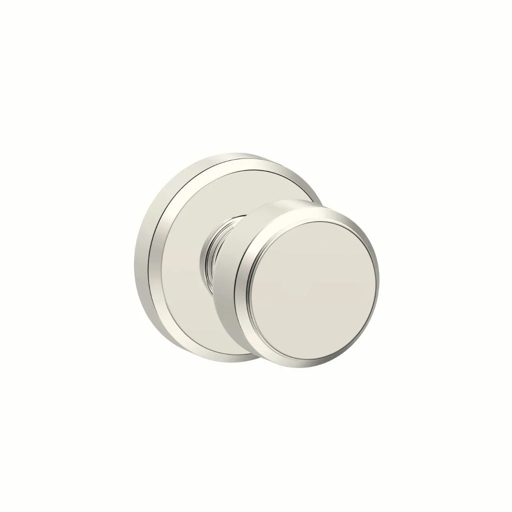 The Schlage Bowery Knob with Greyson Rosette offers a perfect balance of modern simplicity and subtle curves. The smooth, round Bowery knob pairs seamlessly with the Greyson rosette’s elegant, slightly arched edges, creating a versatile style that complements both traditional and contemporary interiors. Built for durability and designed for smooth operation, it’s an ideal choice for bedrooms, bathrooms, or any interior door.
