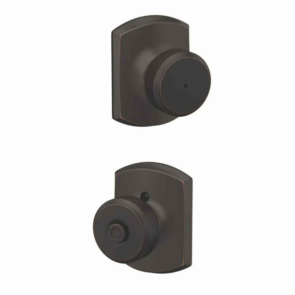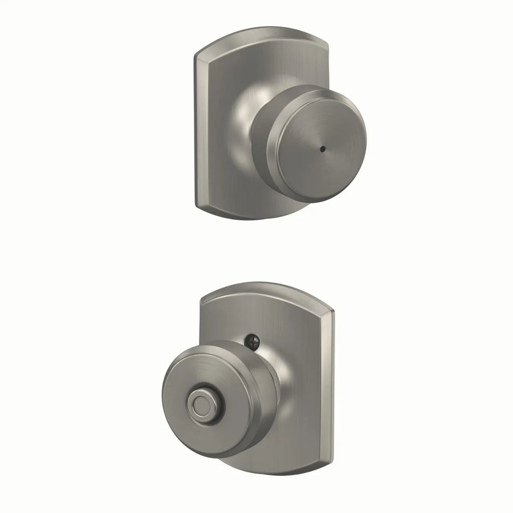 Bring modern simplicity and subtle elegance to your doors with the Schlage Bowery Knob with Greenwich Rosette. Featuring the clean, minimalist round Bowery knob paired with the Greenwich rosette, this design blends a sleek feel with contemporary style. Perfect for a variety of interiors, it’s available in multiple functions including passage, privacy, keyed entry, and dummy.
