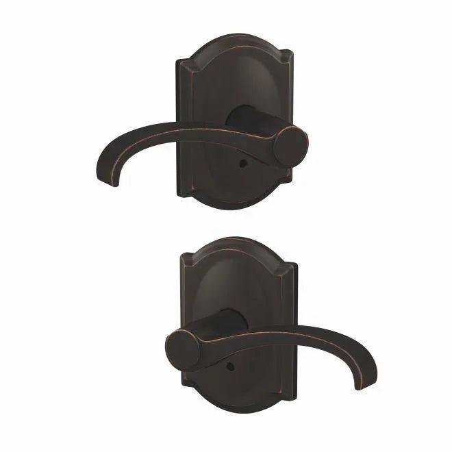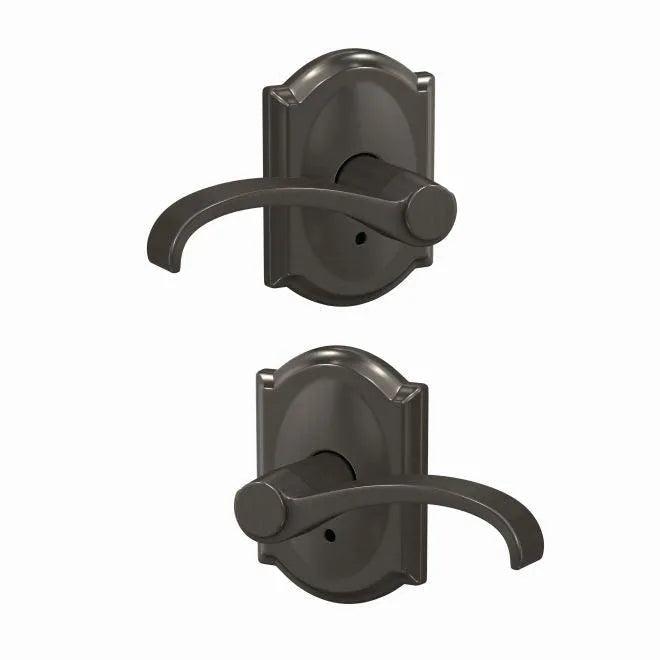 Add traditonal style and versatility to your doors with the Schlage Custom Whitney Lever with Camelot Rosette. Featuring a curved lever paired with the detailed rosette, this design delivers a classic, architectural look. Available in a variety of finishes, easy to install, and built for lasting performance.
